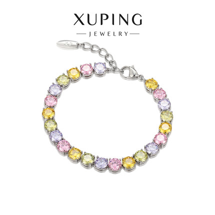 旭平彩宝系列简约彩色圆形手链通勤叠戴单品糖果人造石手饰龙虾扣