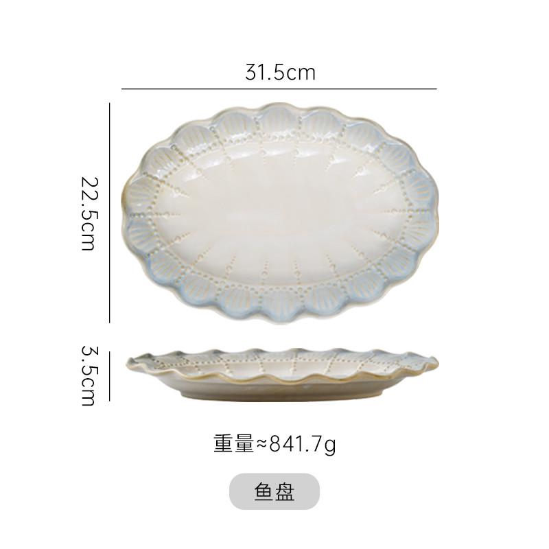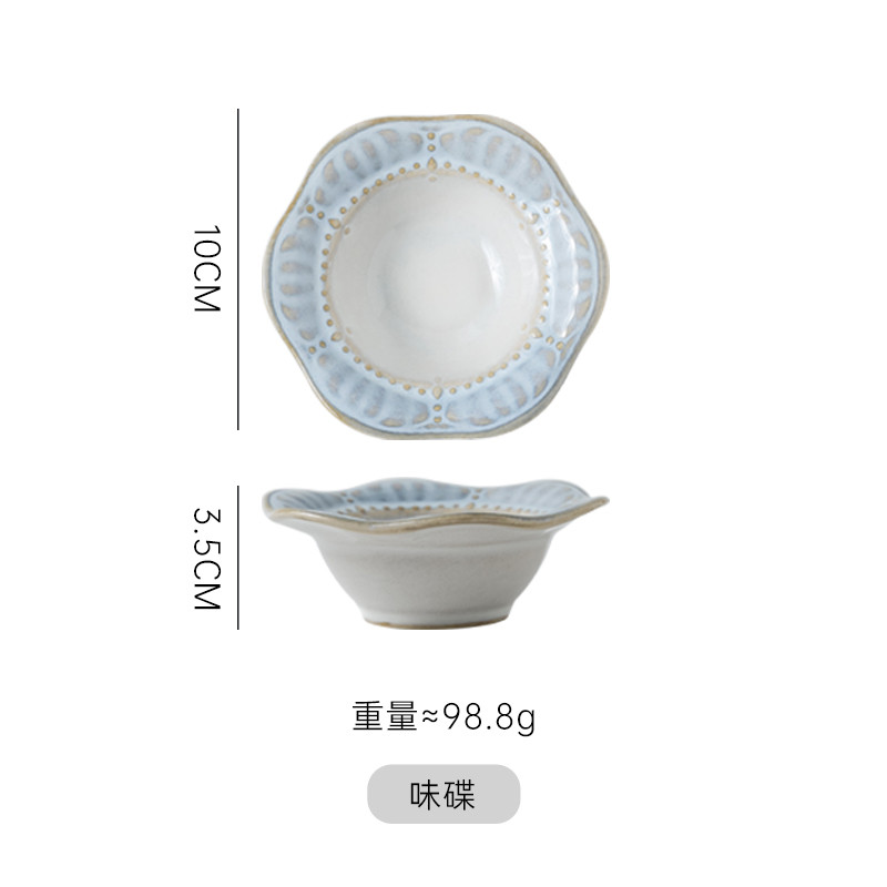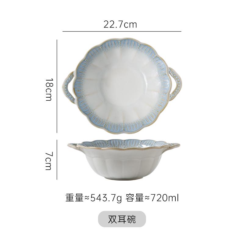 48n烟蓝陶瓷碗碟套装家用2023感餐具法式浮雕米饭碗新款轻奢