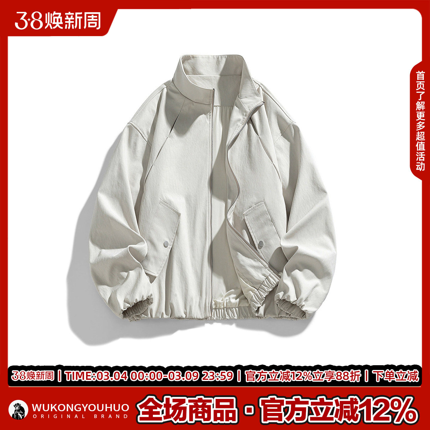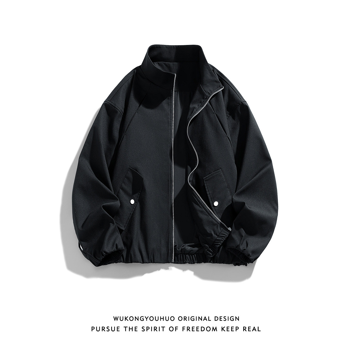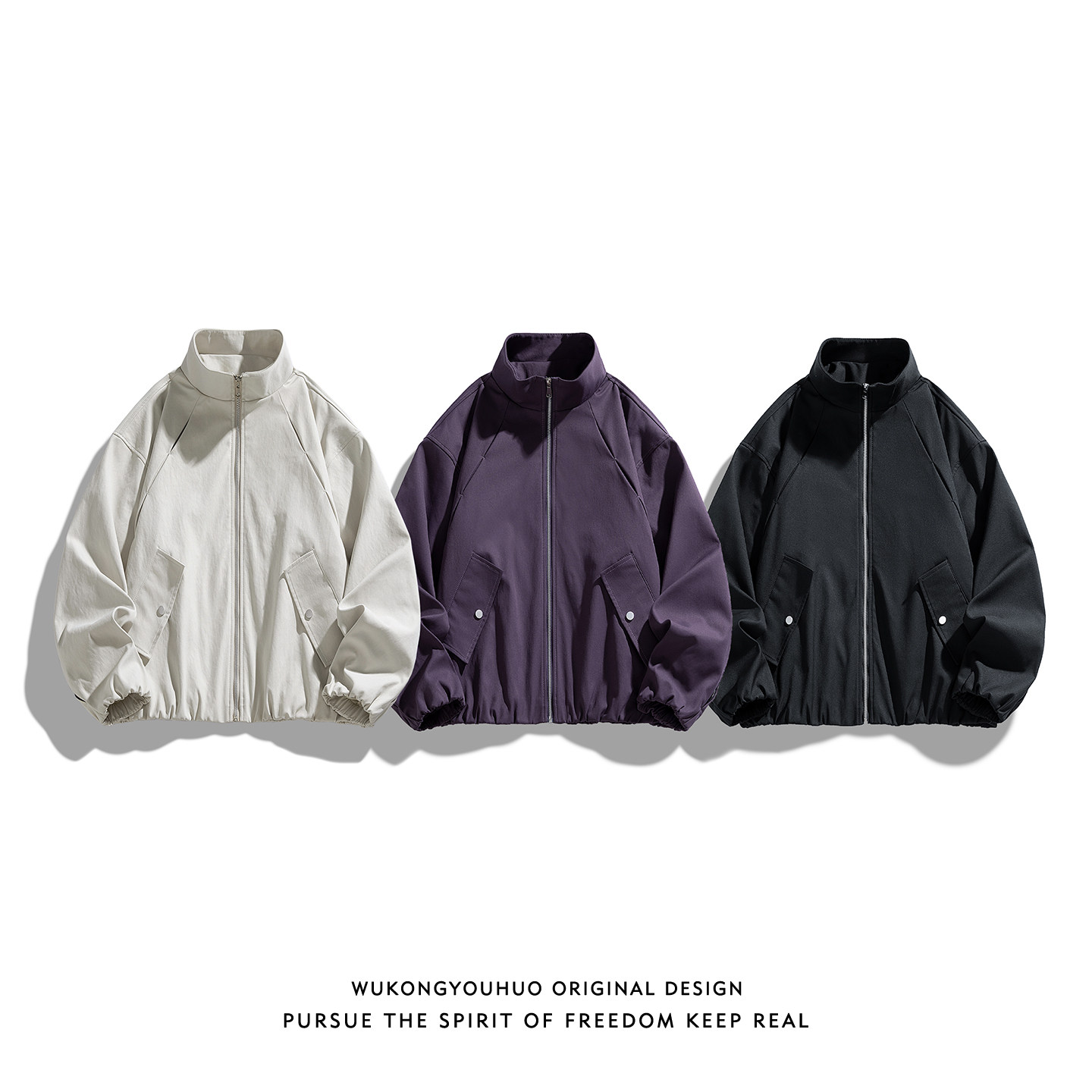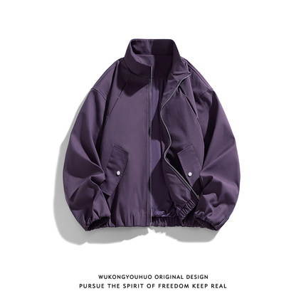 悟空有货潮牌侧边拉链条纹运动立领外套男女春季复古情侣宽松夹克