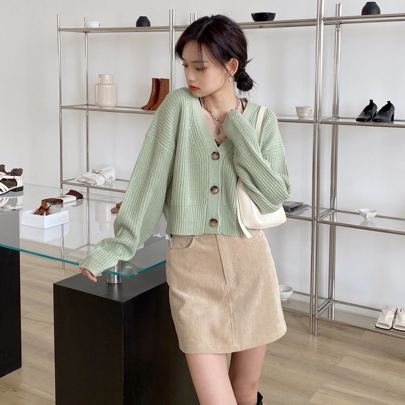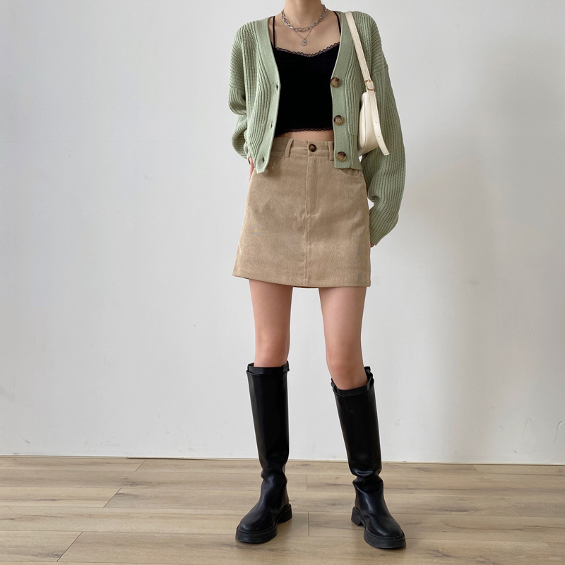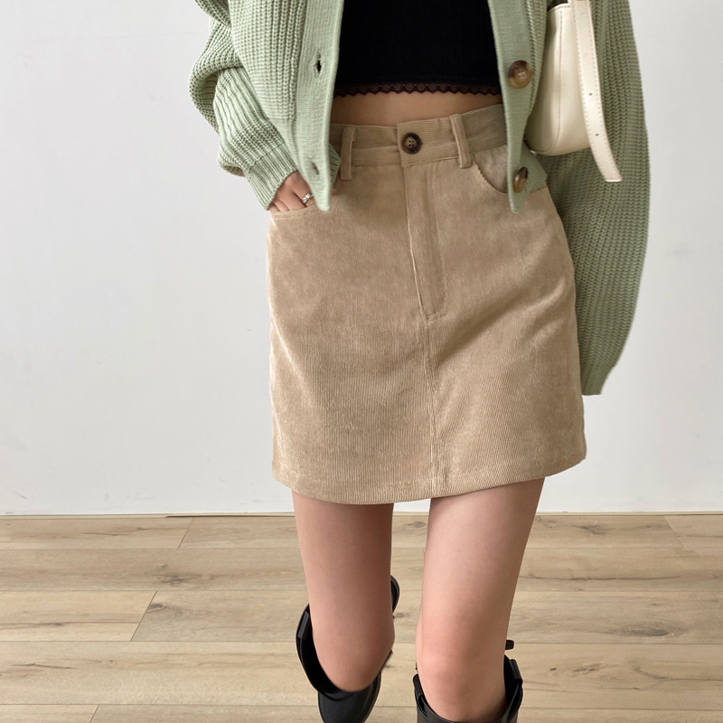 卡其色复古风防走光灯芯绒半身裙
