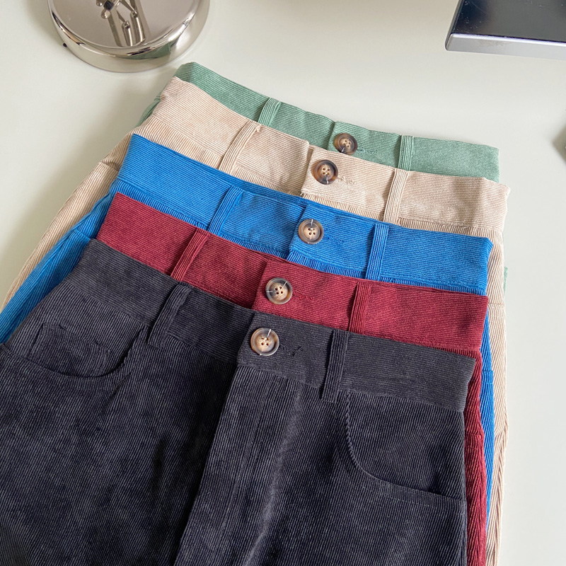 日系学生卡其色灯芯绒半身裙女复古ins高腰防走光裙裤a字包臀短裙