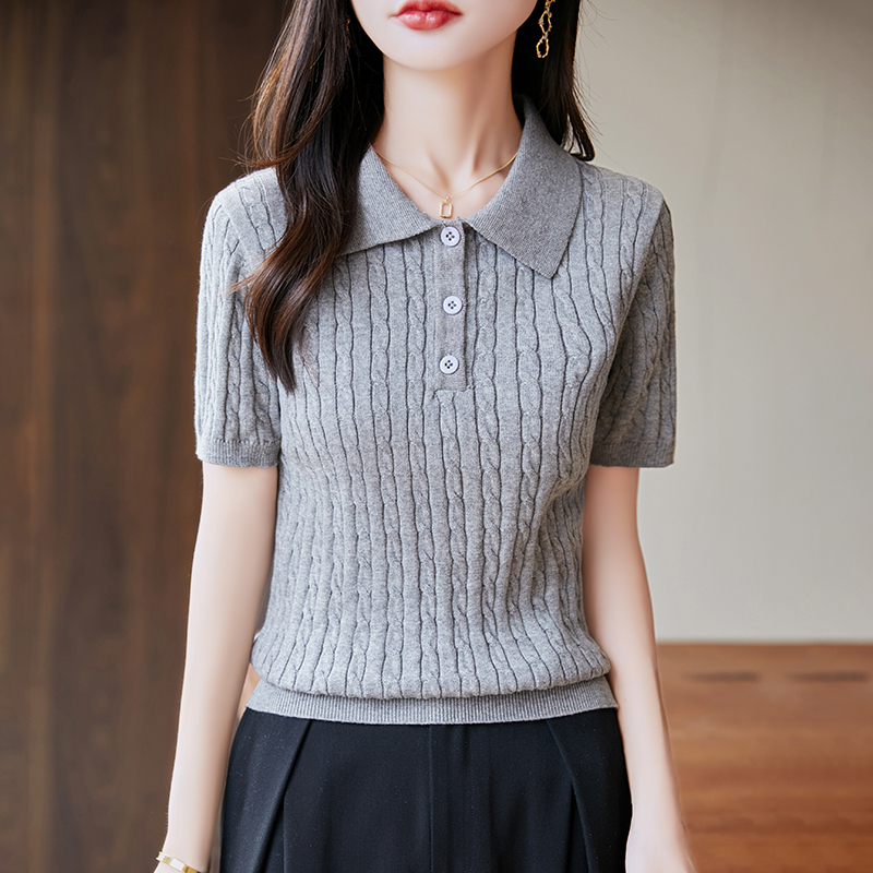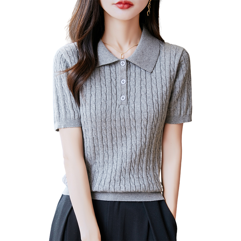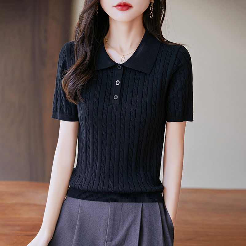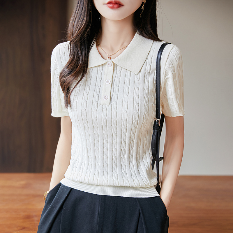麻花纯棉针织短袖女2025春秋夏季新款POLO衫绞花上衣修身t恤半袖
