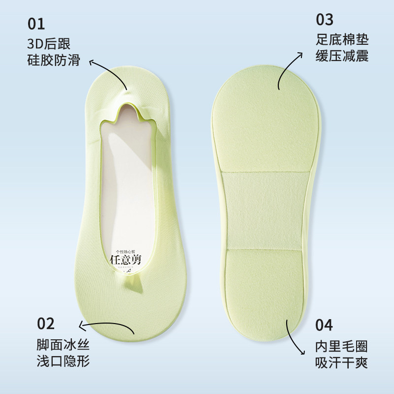 高跟鞋袜子隐形袜防滑不掉跟夏季薄款海绵底减震浅口无痕冰丝船袜