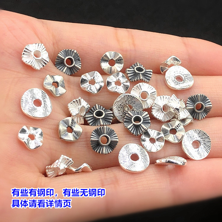 s925纯银复古波浪水波纹隔片垫片水晶文玩编织手绳串项链diy配件