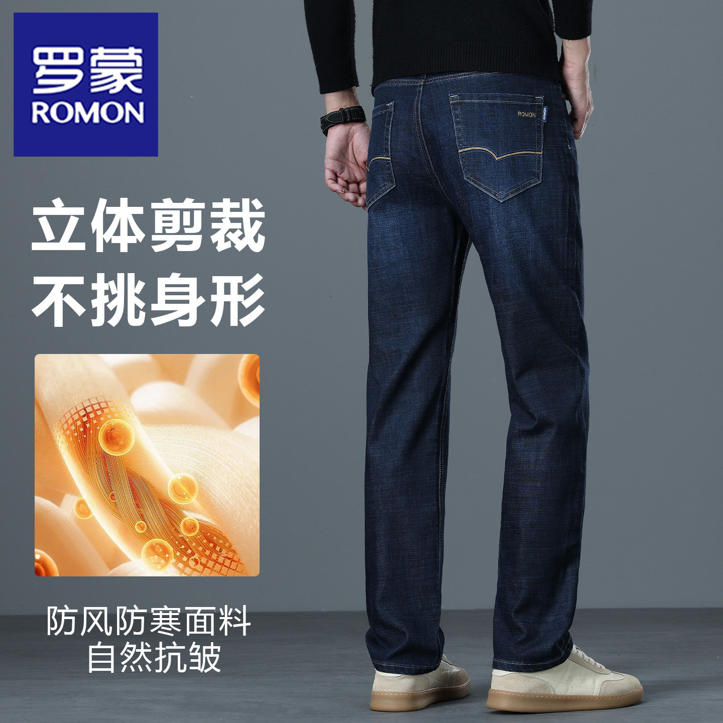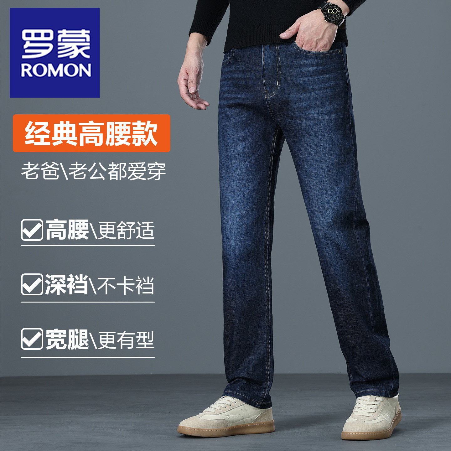 罗蒙牛仔裤男商务直筒宽松休闲中高腰爸爸装深裆弹力秋季厚款裤子