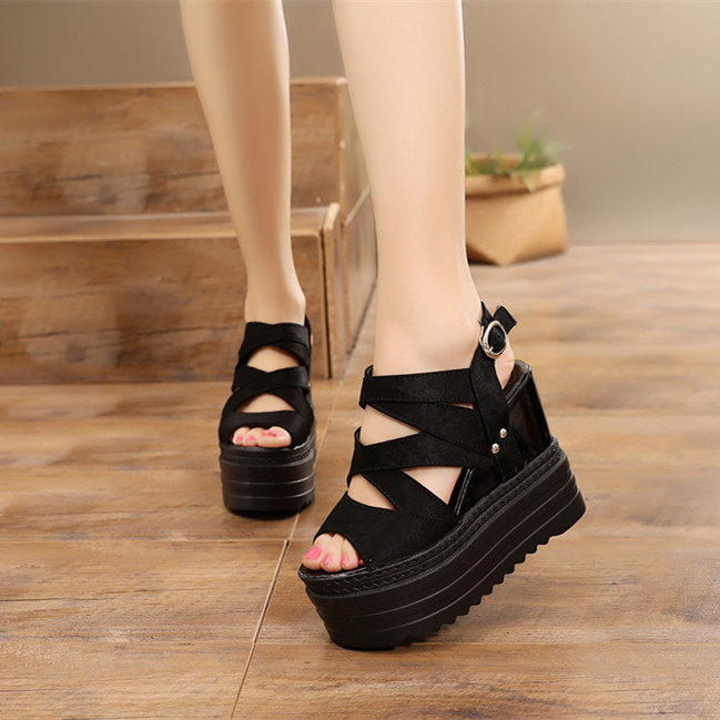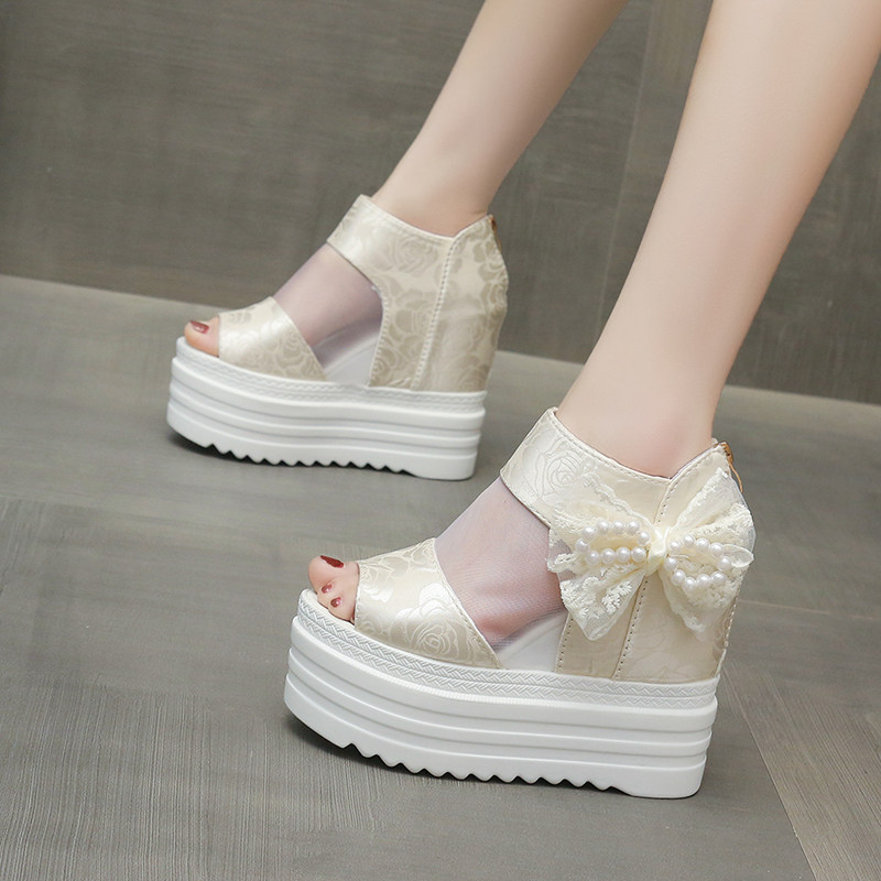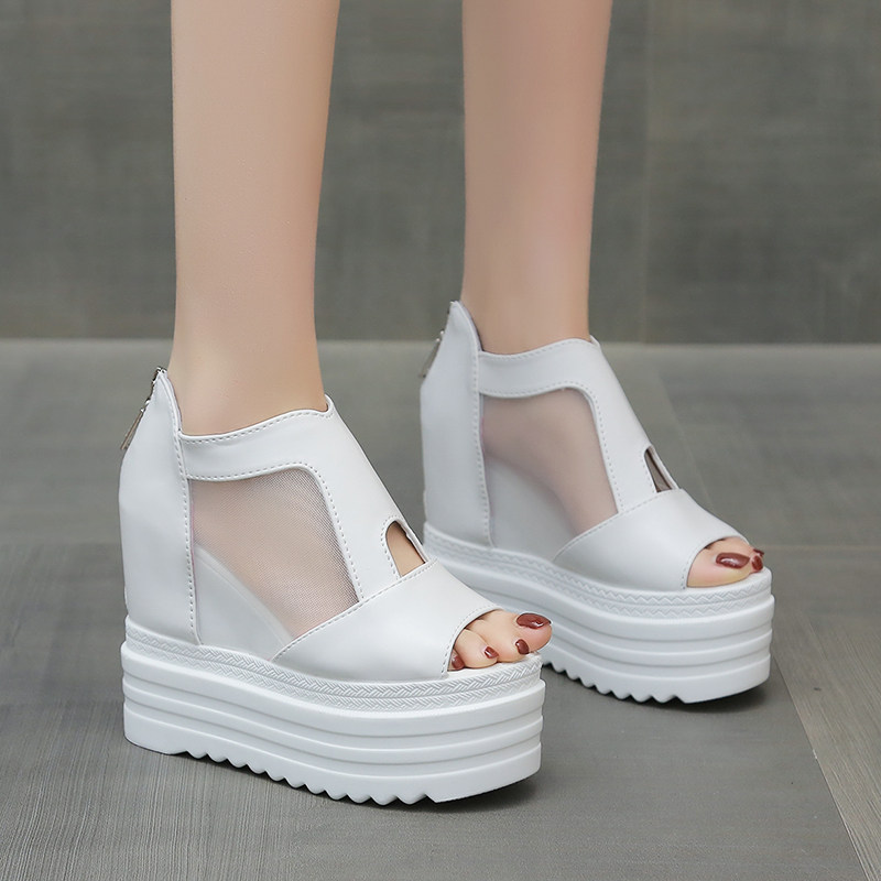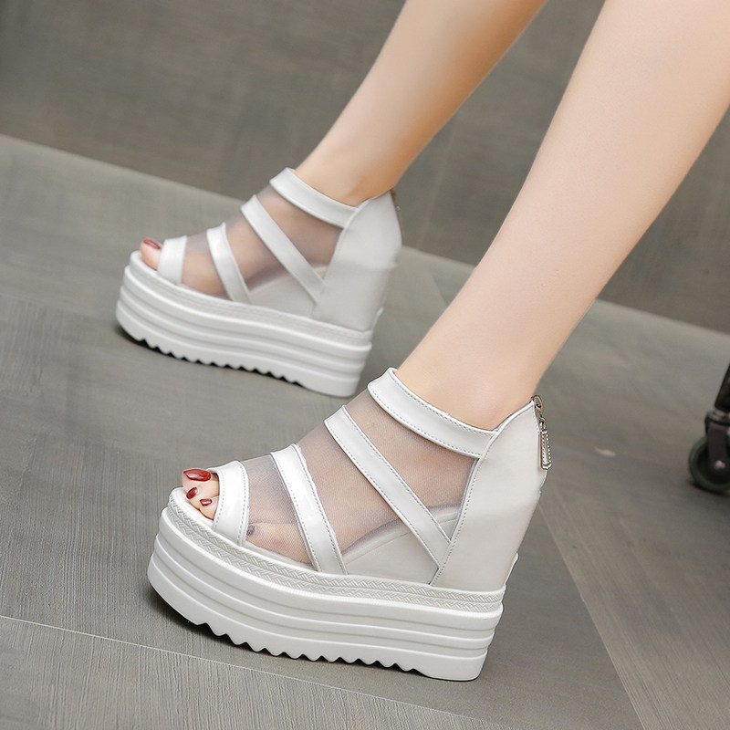 内增高坡跟性感网纱松糕厚底凉鞋