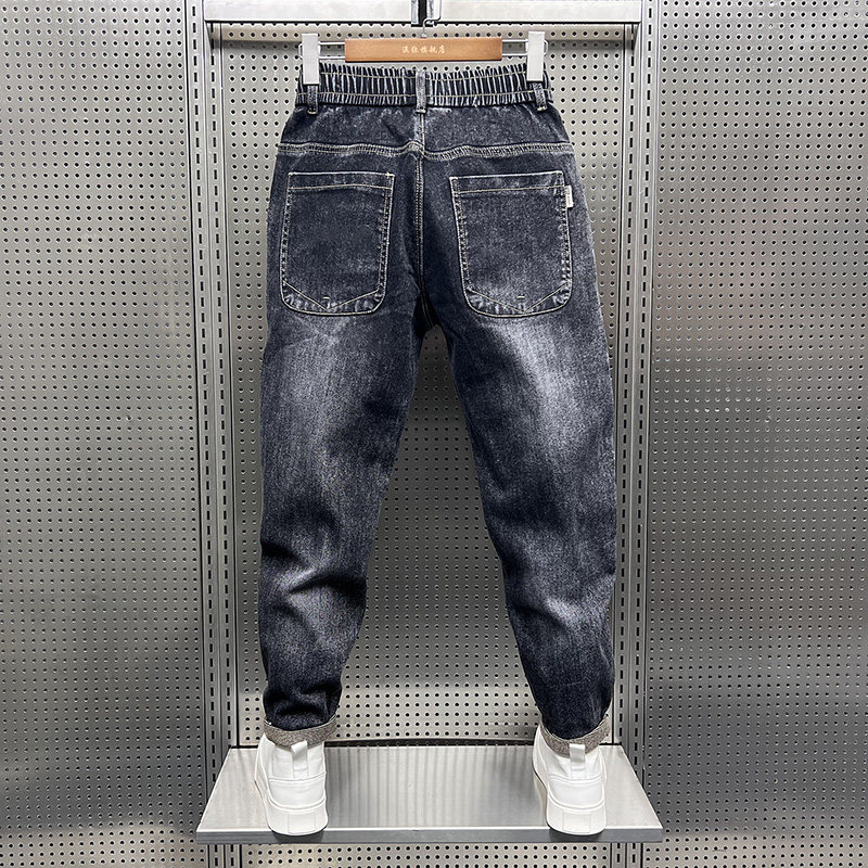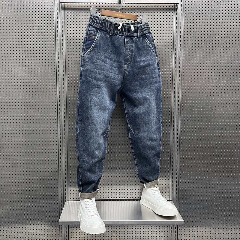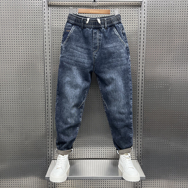 秋冬加入加厚水洗哈伦牛仔裤男款