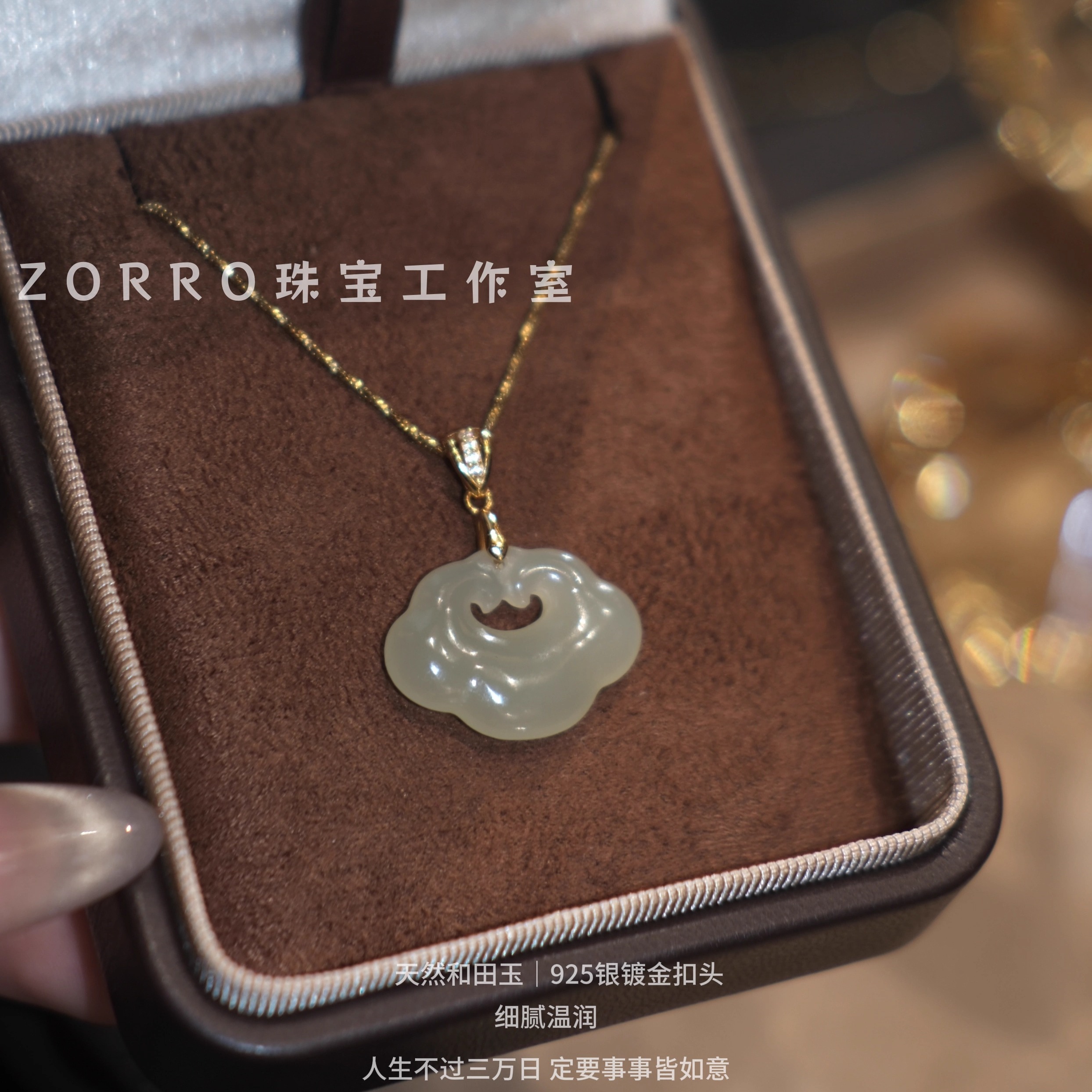 ZORRO原创 天然和田玉如意S925银吊坠项链平安锁新中式翡翠珠宝