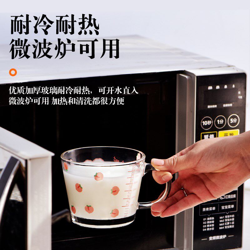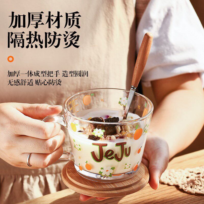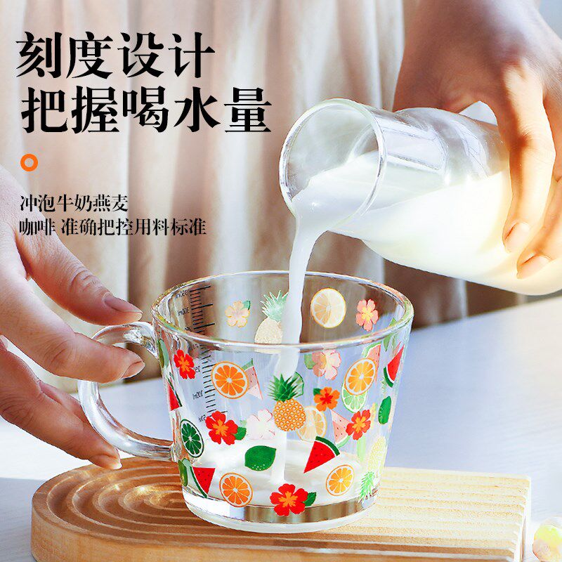 新款 耐热玻璃杯早餐杯咖啡牛奶杯儿童刻度水杯家用带盖杯子女可