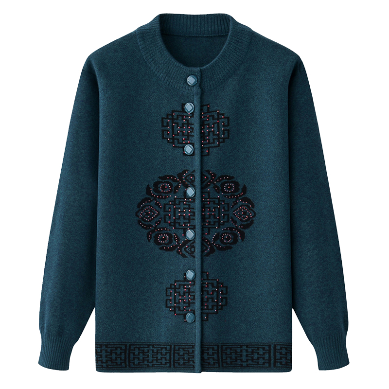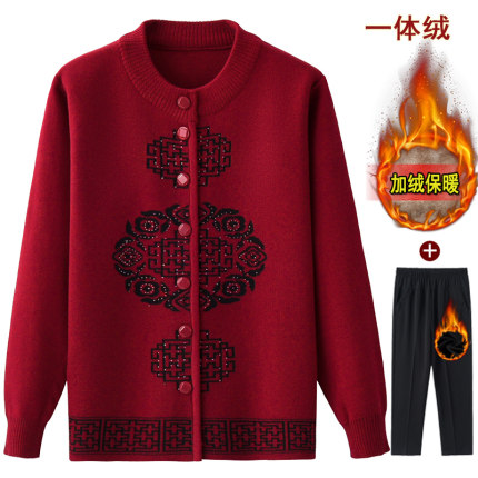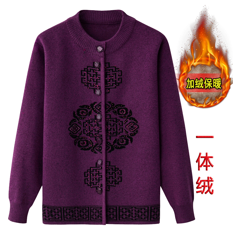 春秋奶奶加绒毛衣开衫外套冬装中老年女妈妈针织保暖上衣唐装衣服