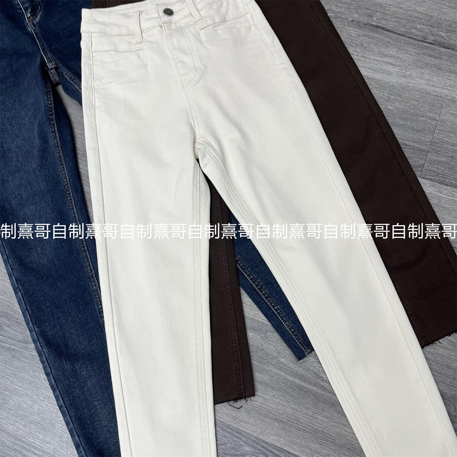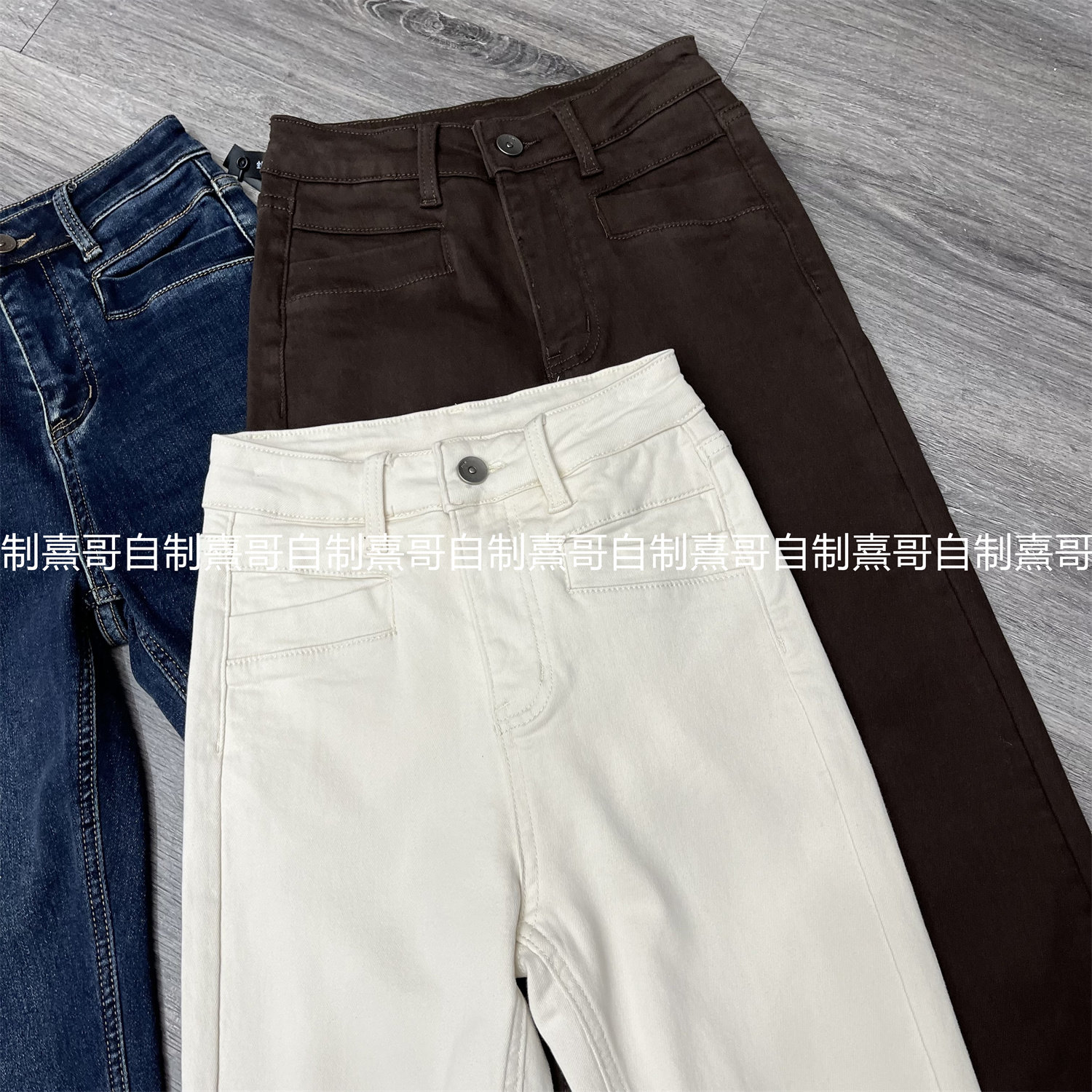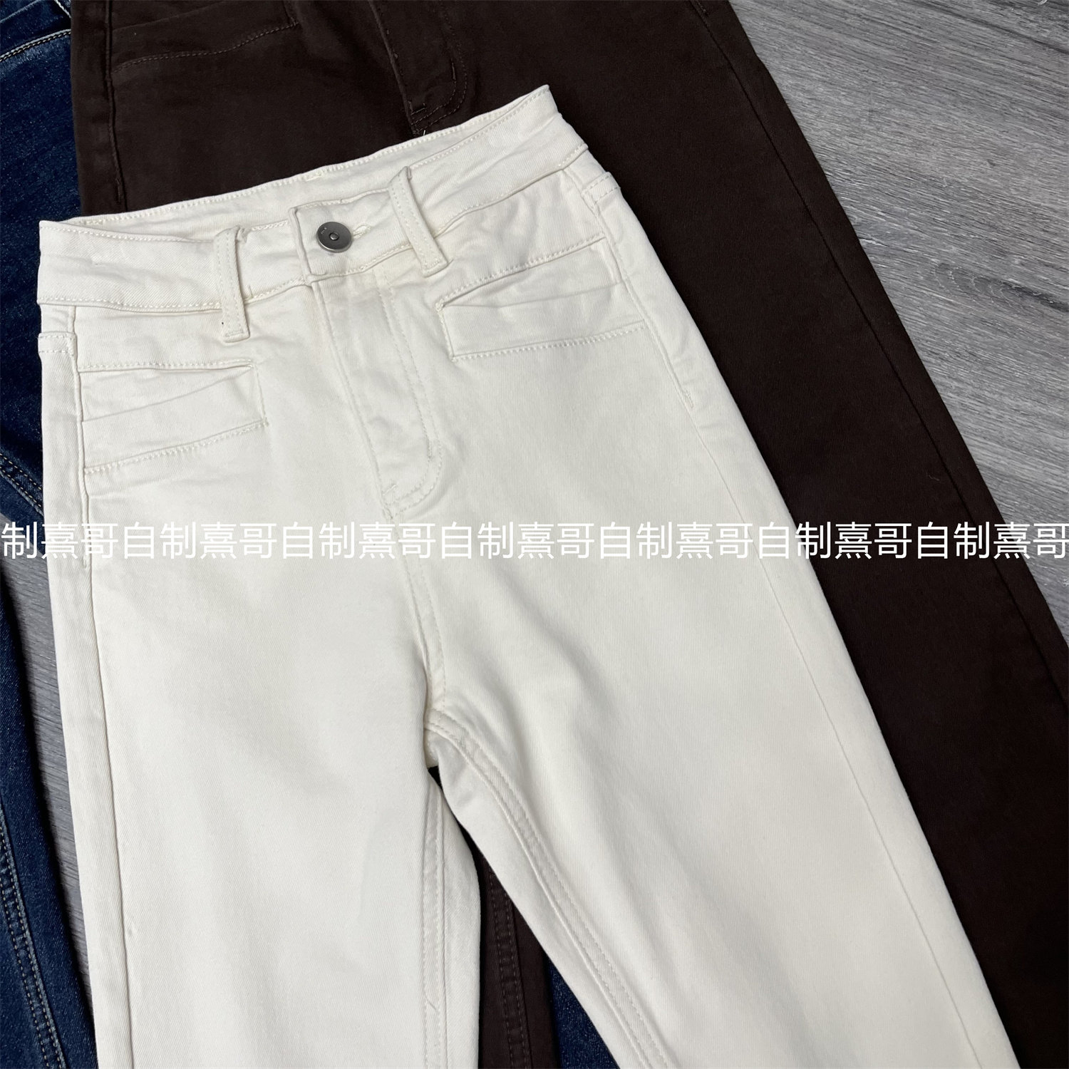 2026春季纯色强力紧身口袋牛仔裤女生弹力高腰显瘦小脚裤靴裤长裤