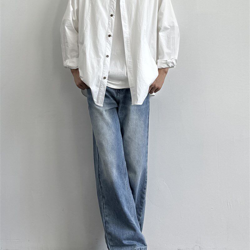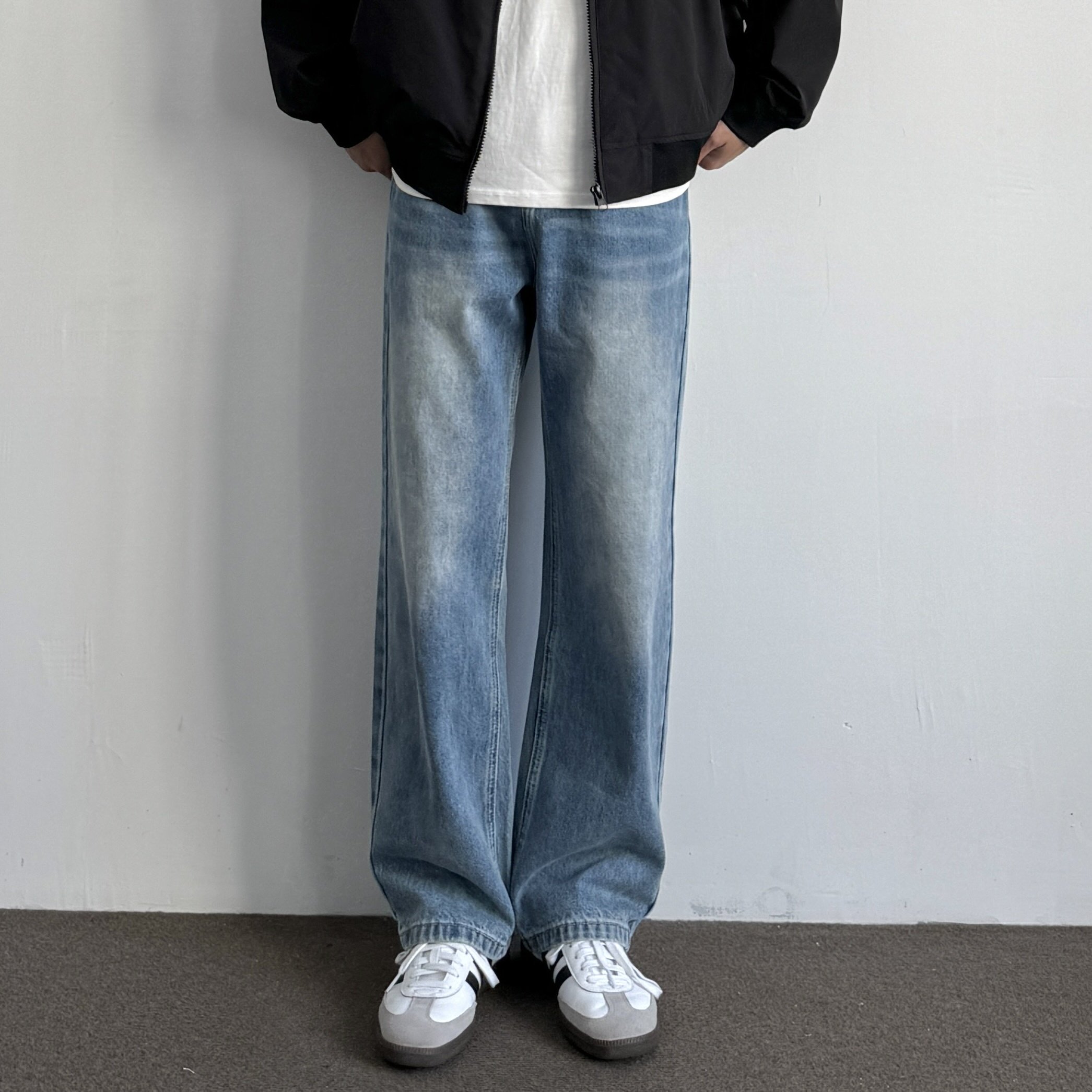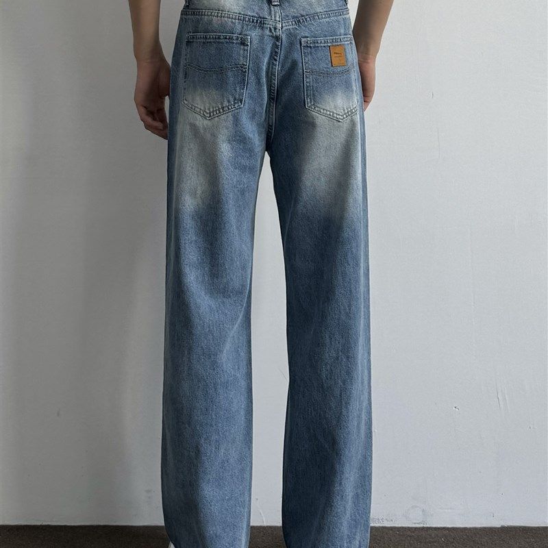 ONUN复古水洗做旧浅蓝色直筒牛仔裤Vintage百搭宽松休闲长裤蓝牛