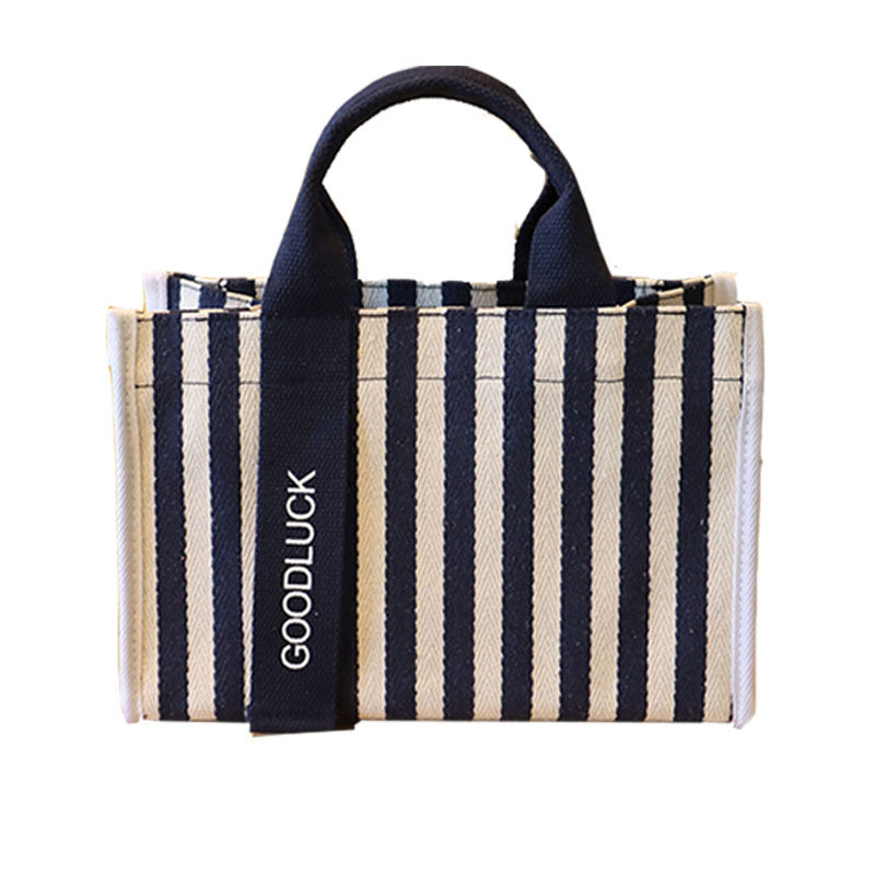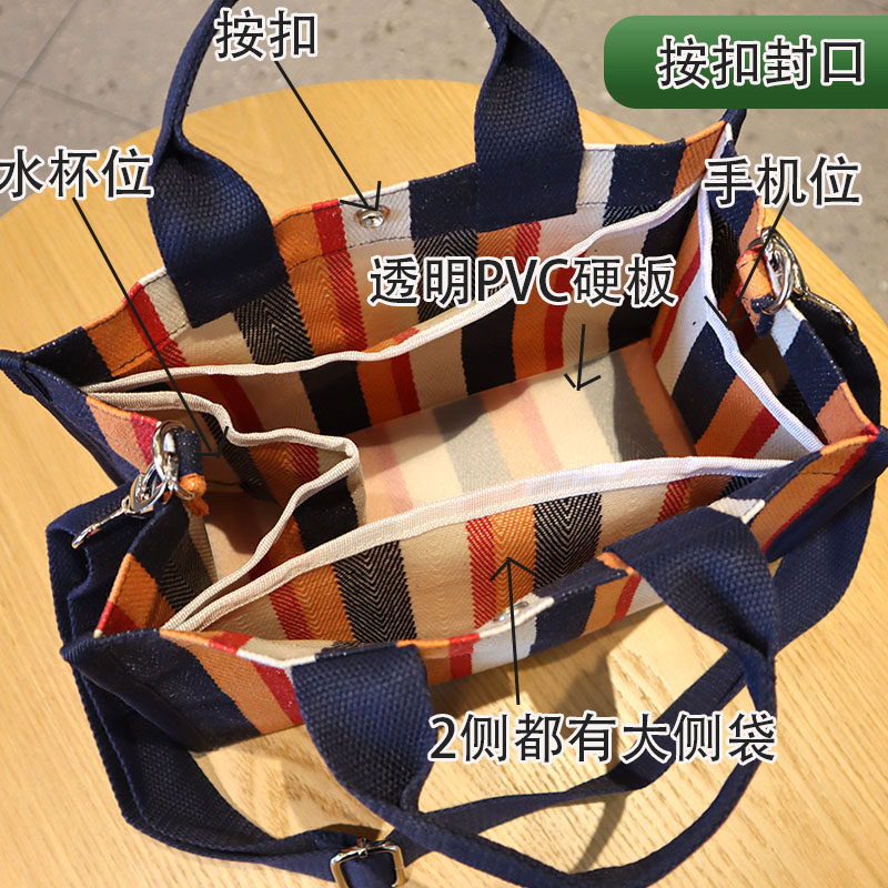 日系小众托特包气质条纹手提大容量A4文件帆布包防水百搭斜挎女包