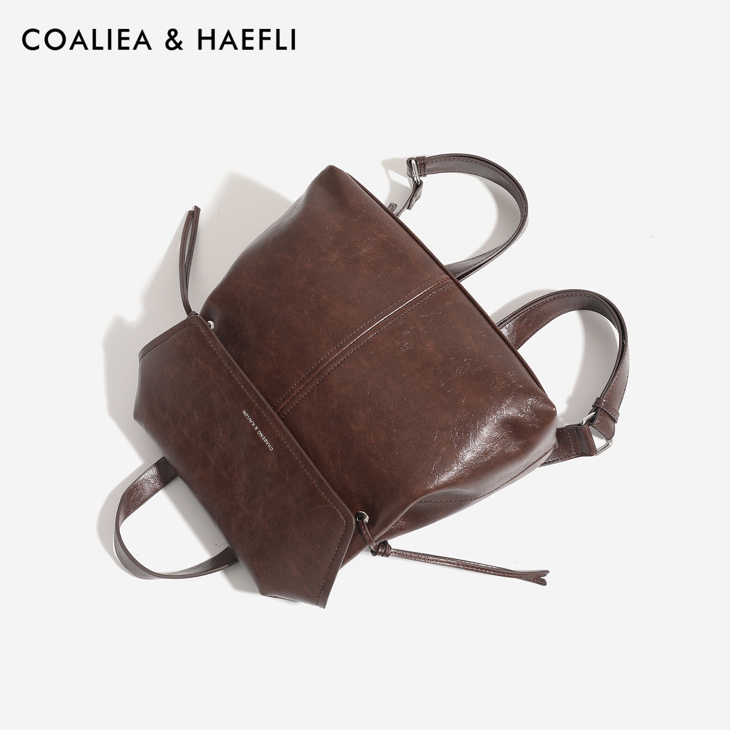 香港品牌油蜡皮双肩包包女式2025新款高级感旅行包大容量绳结背包