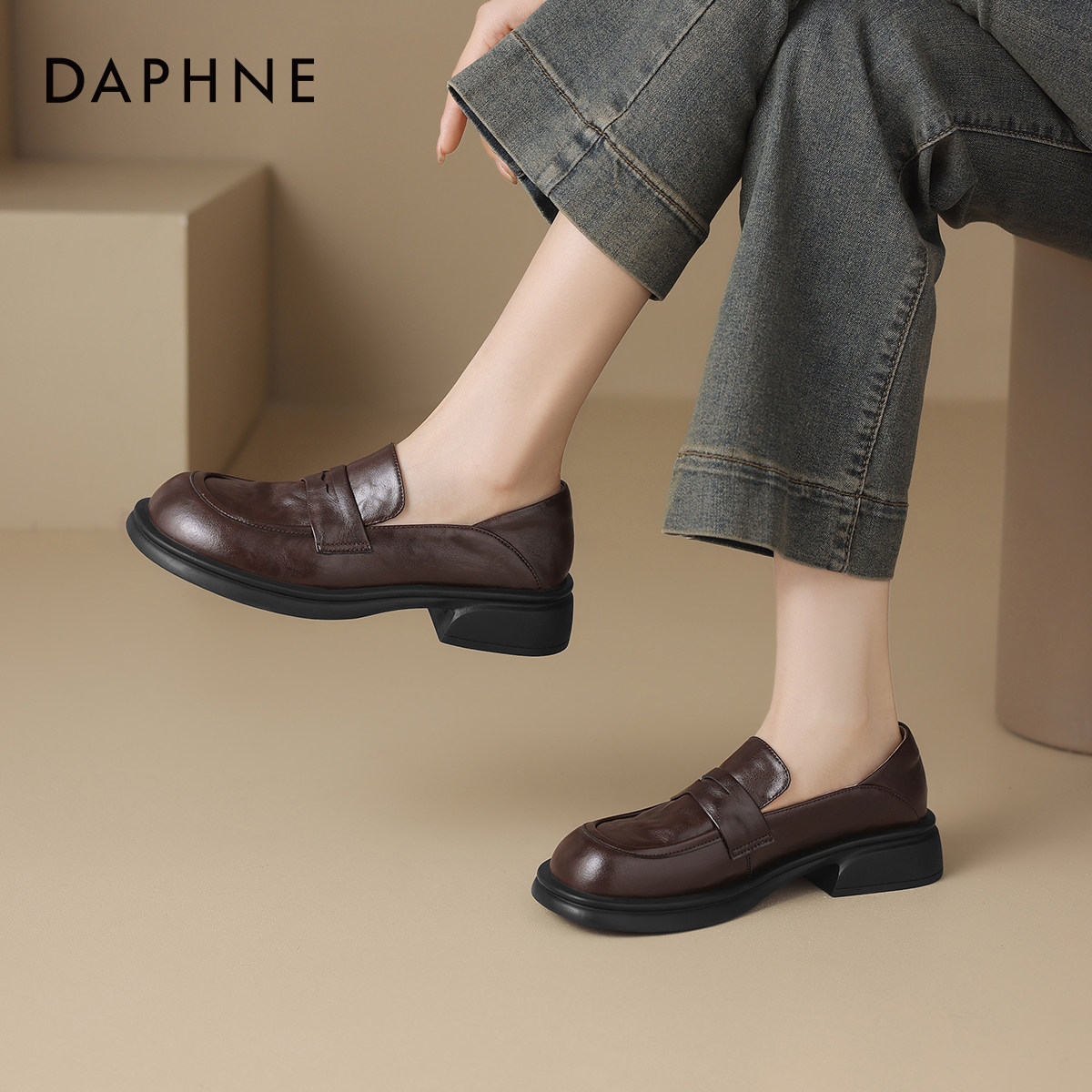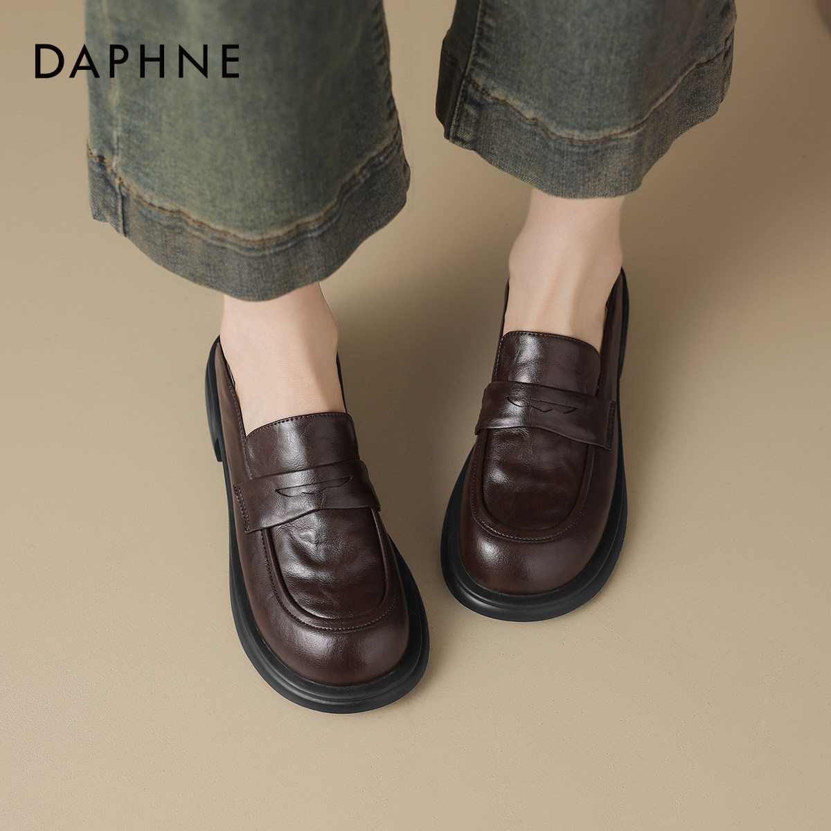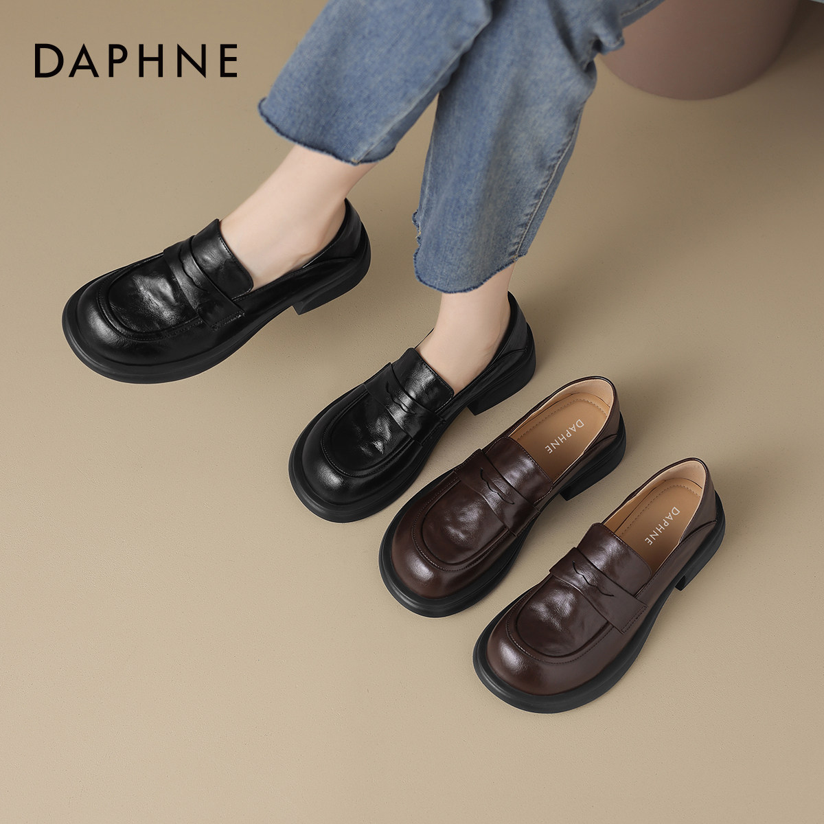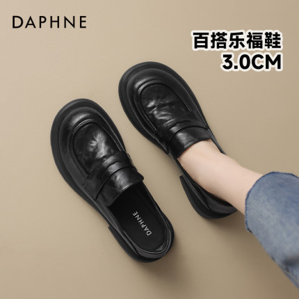 达芙妮厚底黑色乐福鞋女2025新款女鞋单鞋女秋冬季软底小皮鞋女款