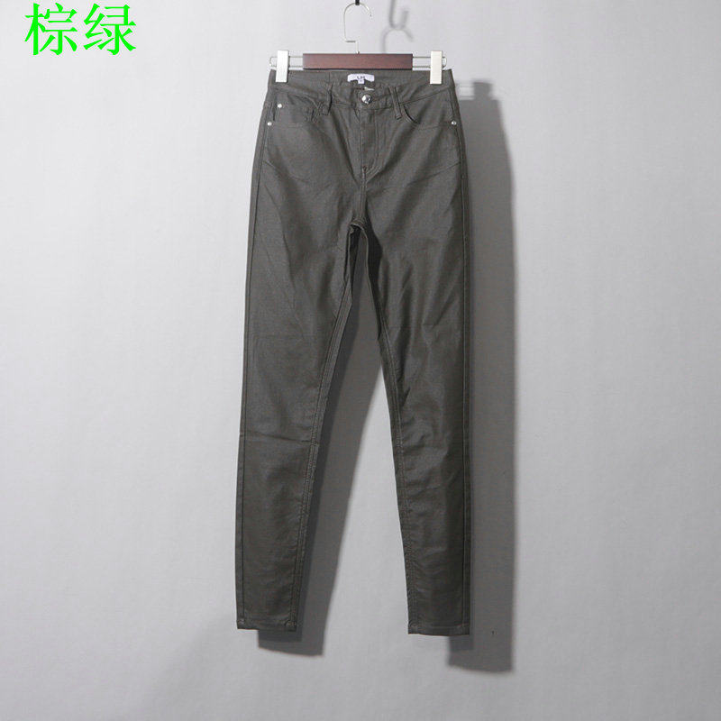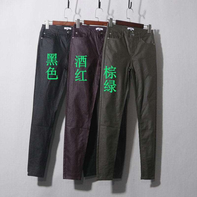 黑色紫色绿色小脚皮裤秋冬高腰牛仔裤外穿打底裤涂层小脚裤配靴子