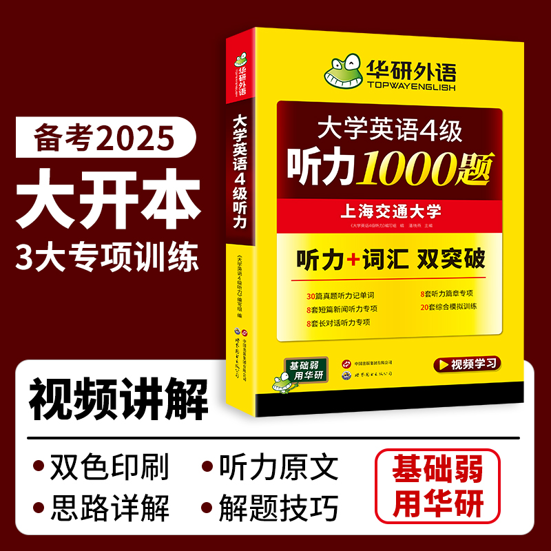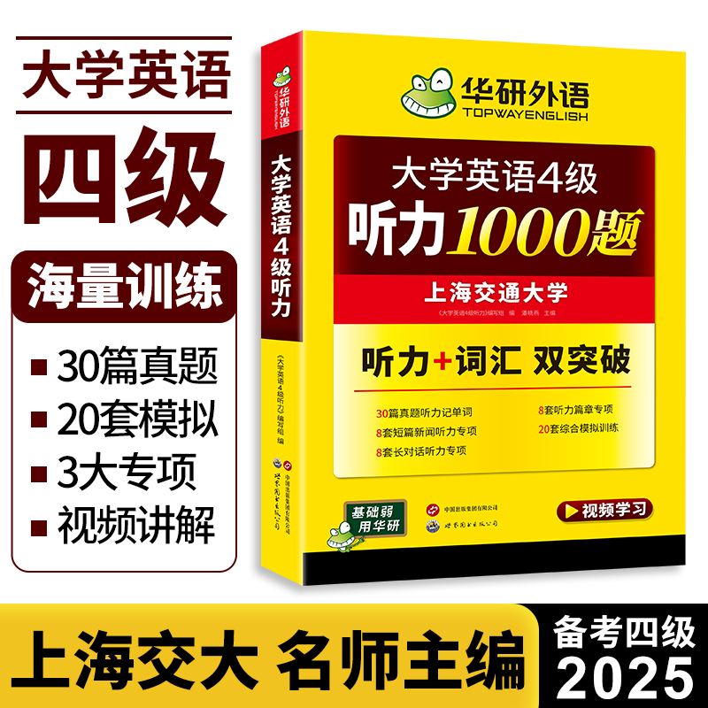 华研外语 英语四级听力专项训练书备考2025年12月资料大学cet4四六级强化听力1000练习题历年考试真题词汇阅读理解翻译与写作