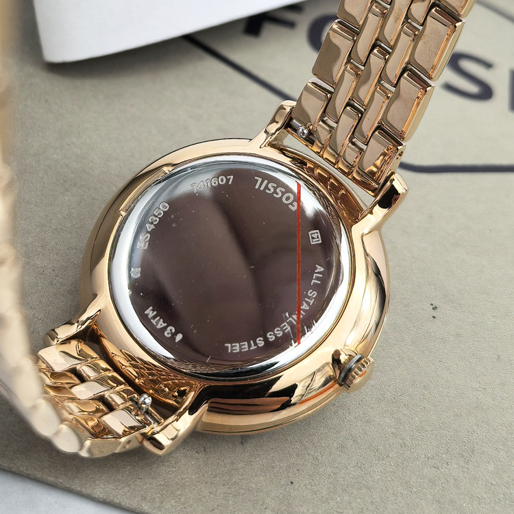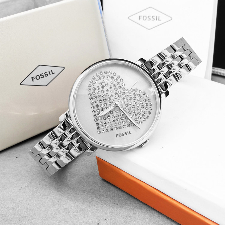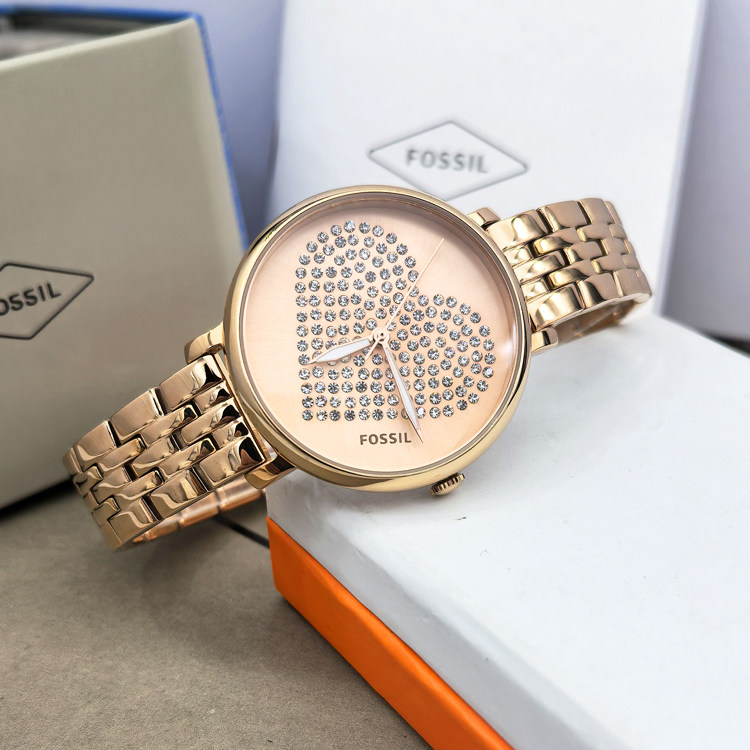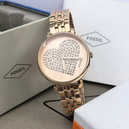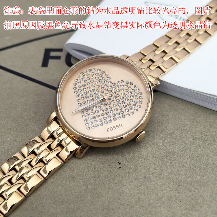 FOSSIL手表不锈钢玫瑰金时尚镶钻心形休闲时尚石英防水女表ES4350