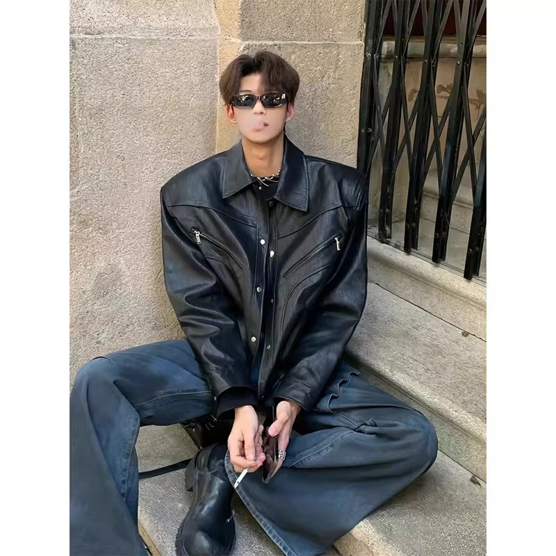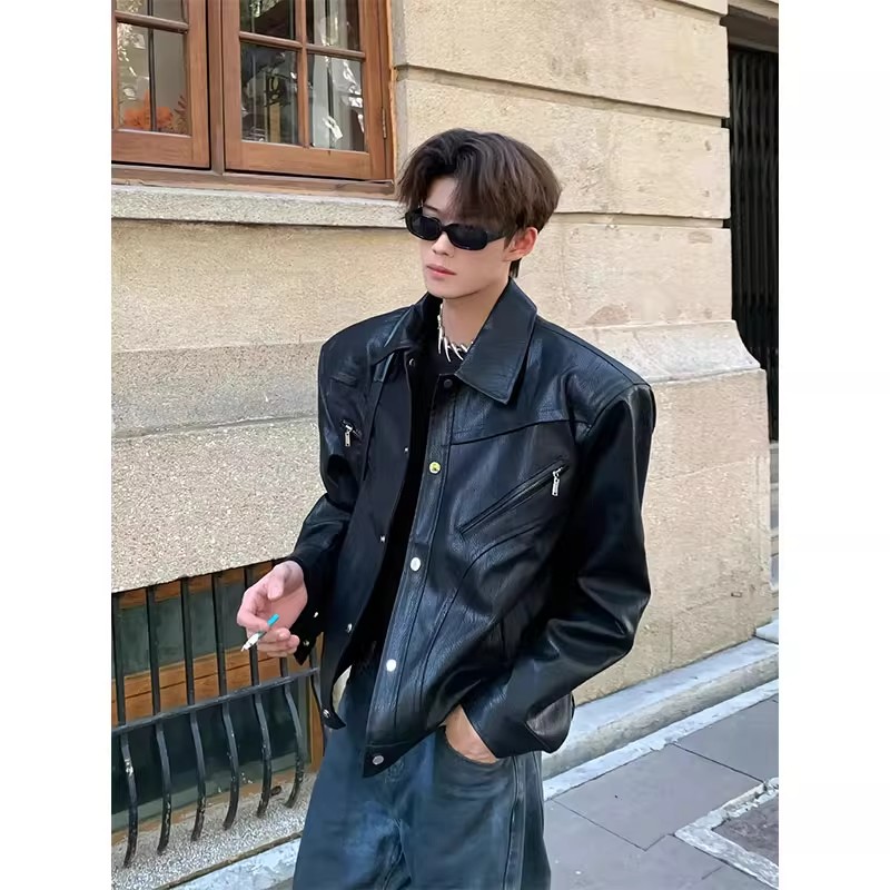 美式短款正肩皮衣外套男小众解构高级感复古痞帅cleanfit机车夹克