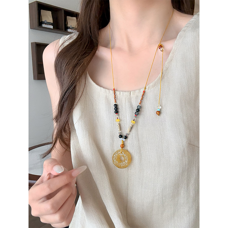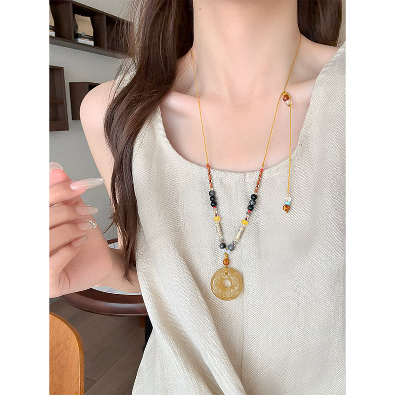【蜜桃茶】日光予诗 新中式禅意平安扣串珠项链长款毛衣链配饰女
