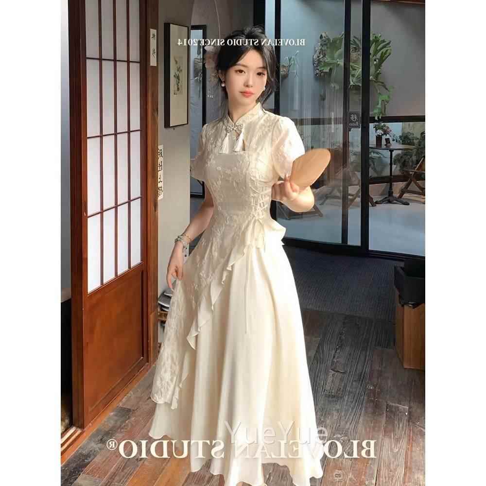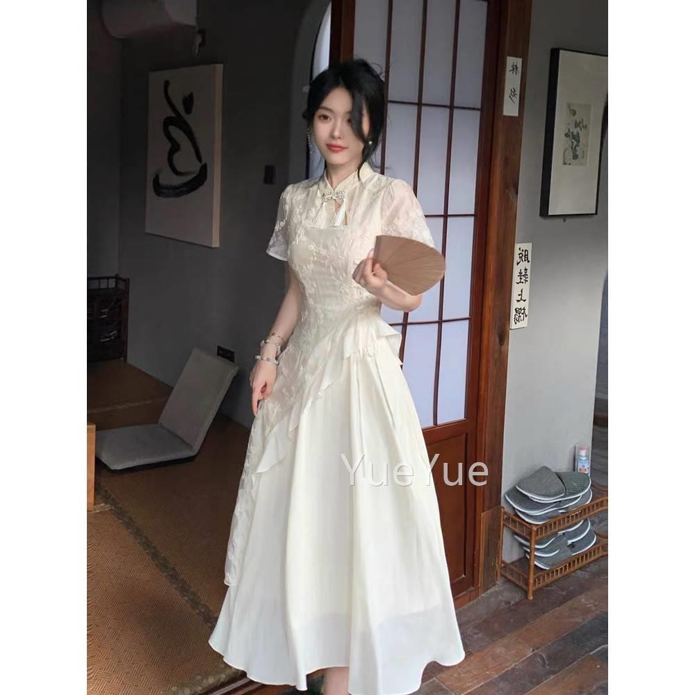 改良流苏绣花旗国袍连衣裙IQR长女夏季风韵味少女不收规则腰裙中