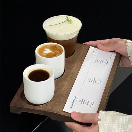 一豆三喝带孔木托盘玻璃杯冷萃对杯套装意式浓缩陶瓷咖啡杯拿铁杯