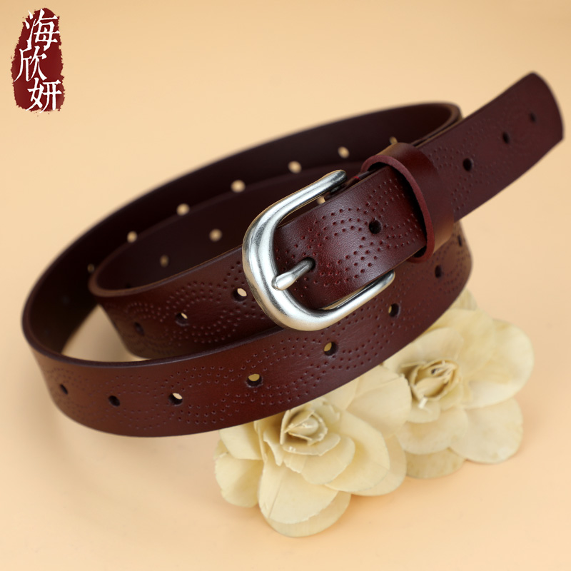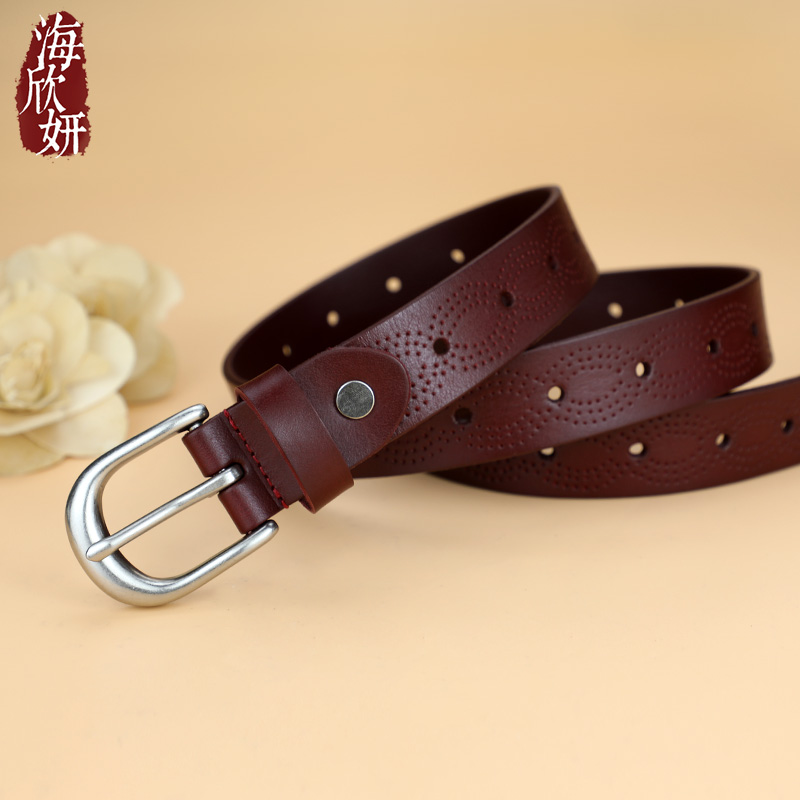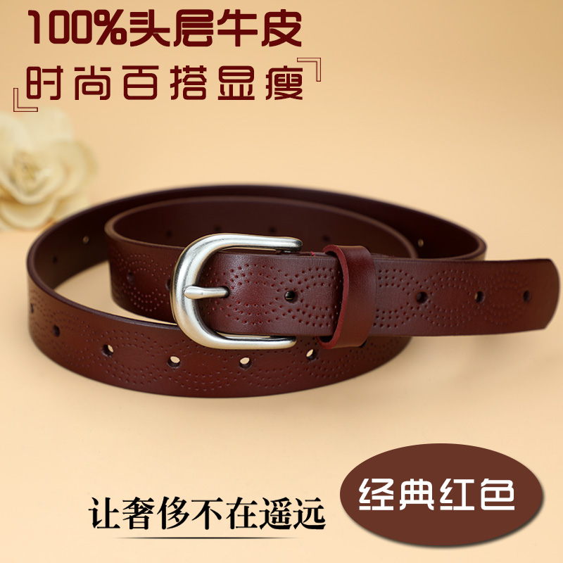 宽腰带女真皮头层纯牛皮红色本命年针扣皮带装饰裙牛仔裤腰带小众