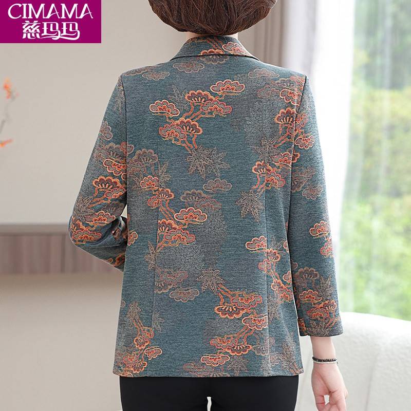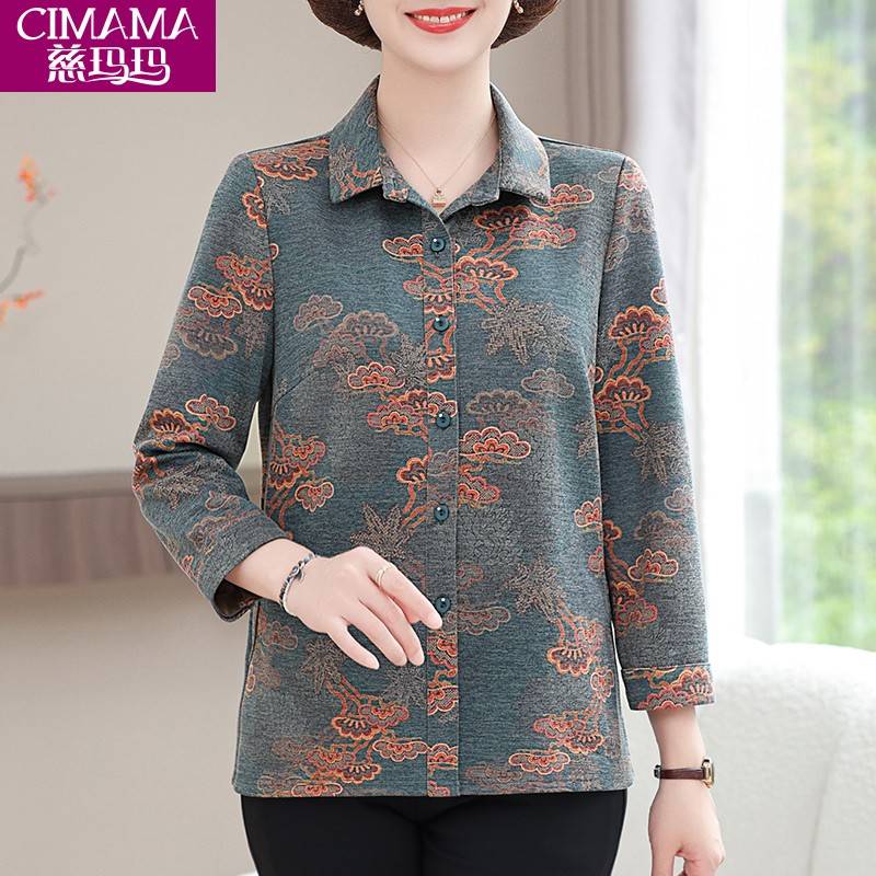 大码妈妈秋装长袖衬衫上衣50岁60中老年人女春秋花色衬衣2024新款