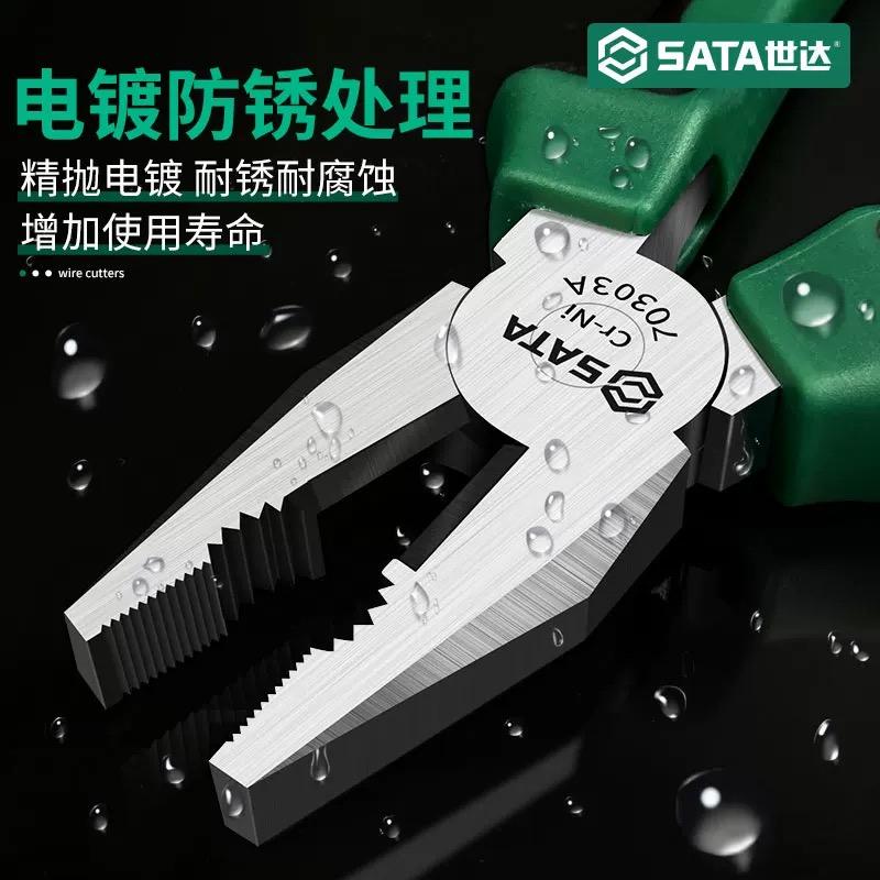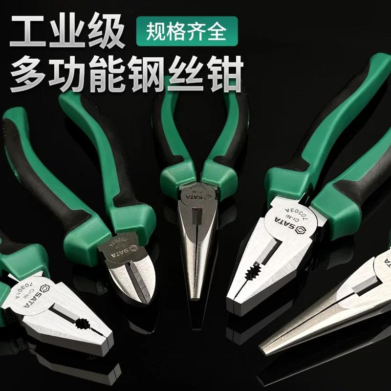 SATA世达老虎钳电工专用斜口钳尖嘴钳多功能工业级钳子偏口钳剪钳