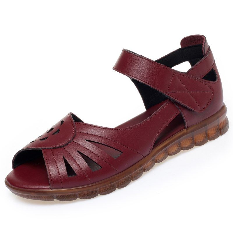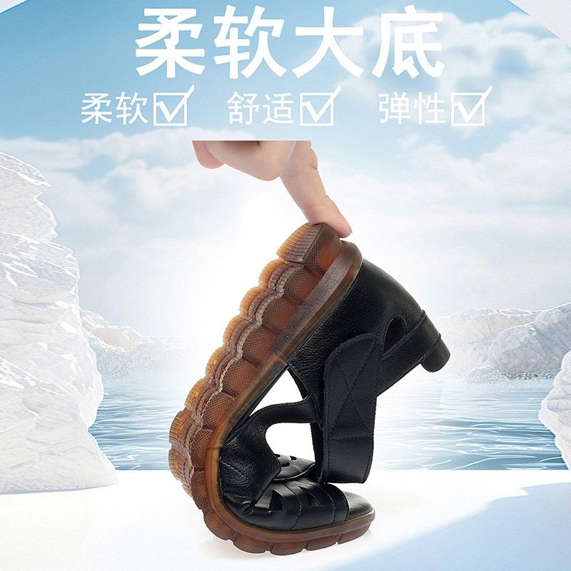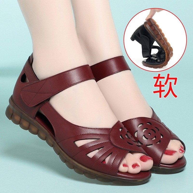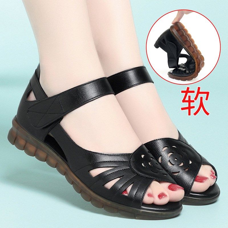 2025年夏季中老年凉鞋平底镂空女士皮凉鞋牛筋底防V滑妈妈鞋凉鞋