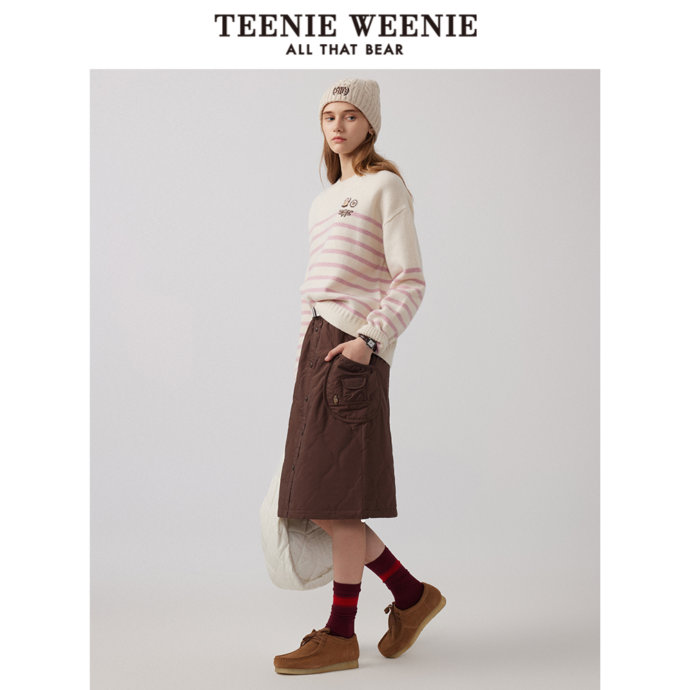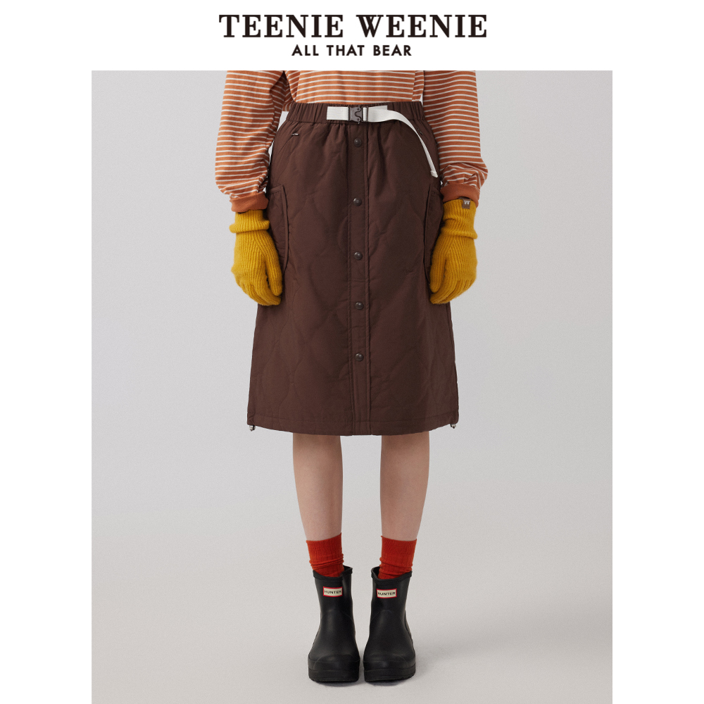TeenieWeenie小熊女装冬季美拉德A字裙保暖中长款半身裙