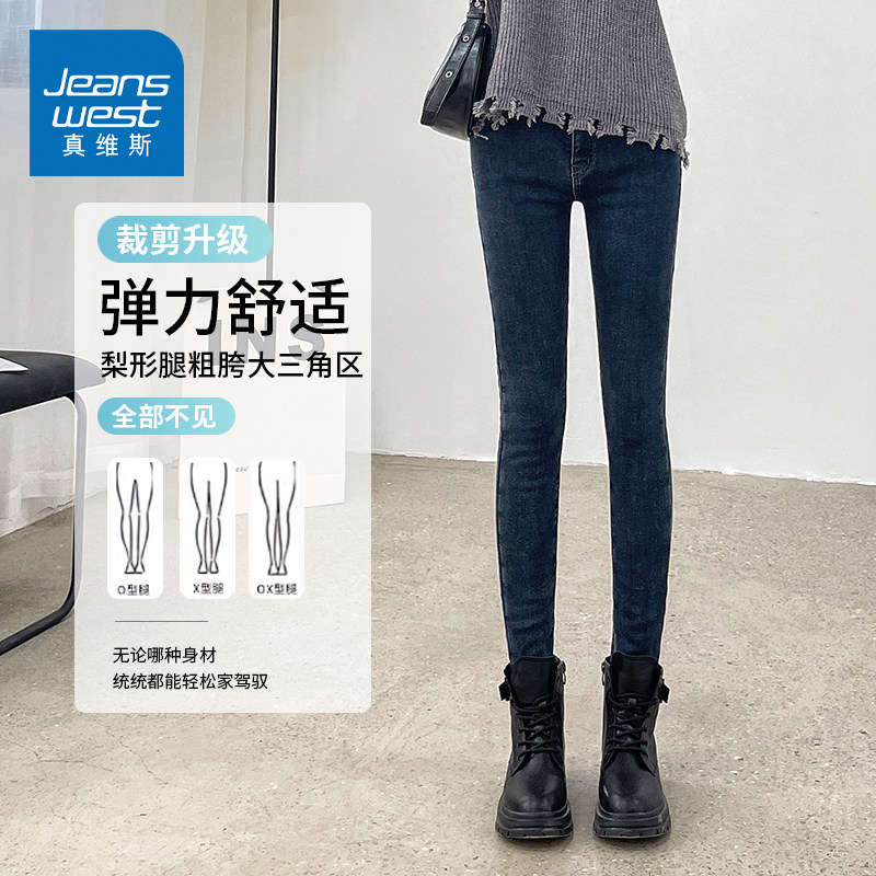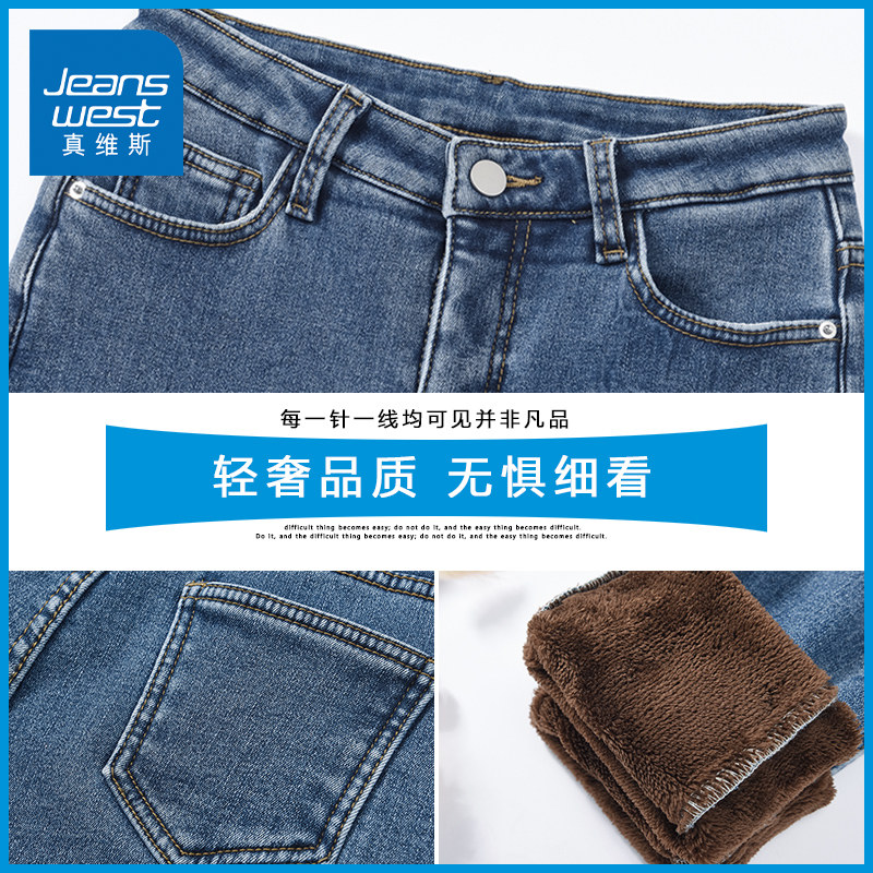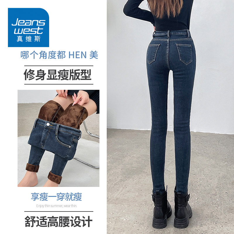 KZH真维斯加绒牛仔裤女秋冬新款修身显瘦铅笔裤加厚高腰小脚长裤