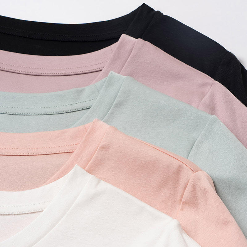 思诺芙德2025夏季新款圆领粉色真丝T恤女莫代尔宽松短袖棉感上衣
