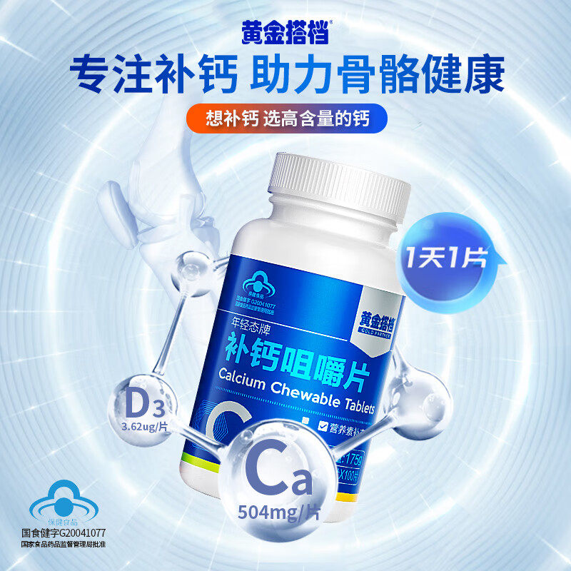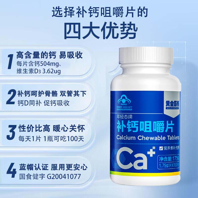 黄金搭档钙片补钙咀嚼成人中老年人护关节腿抽筋腰酸疼痛骨质疏松