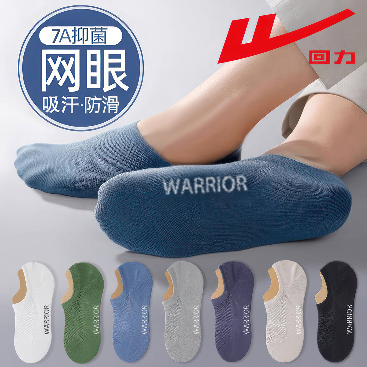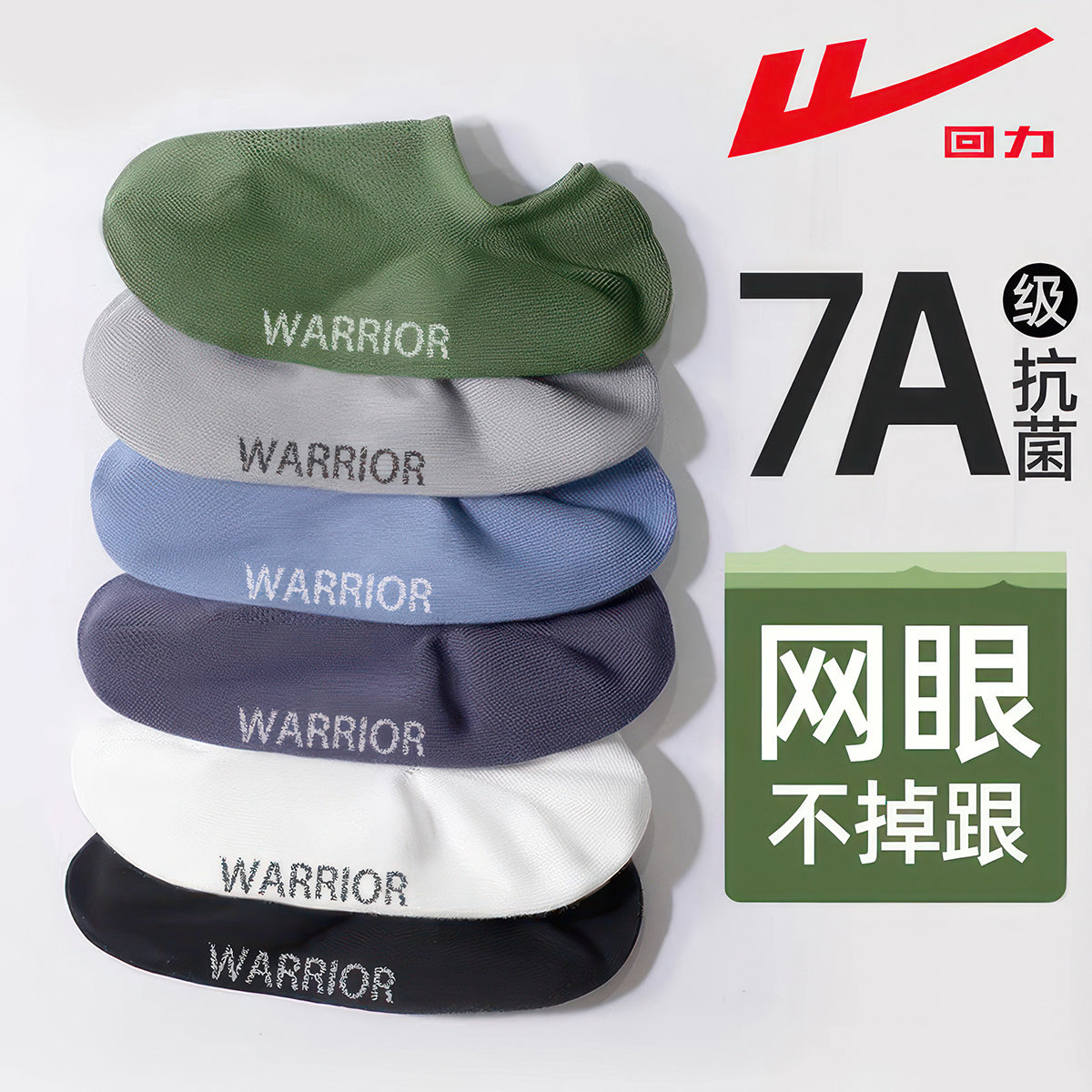回力7A抗菌袜子男士夏季薄款新疆棉船袜吸汗透气防臭薄款耐磨短袜