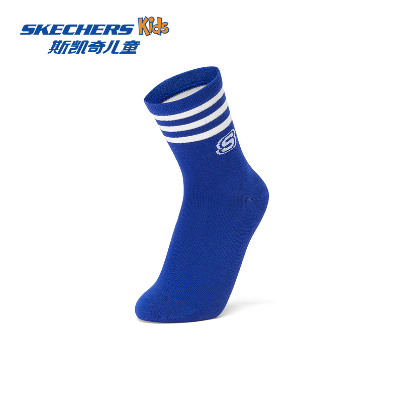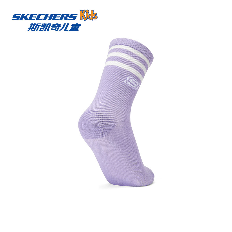 斯凯奇outlets男女童运动袜子时尚舒适春秋儿童抗菌中筒袜3对装