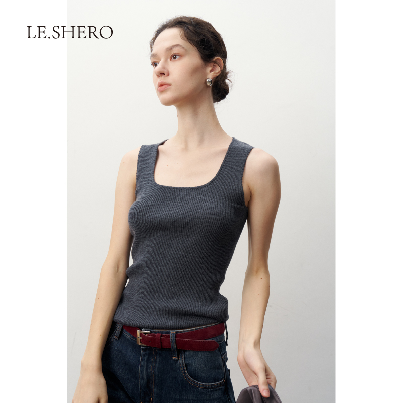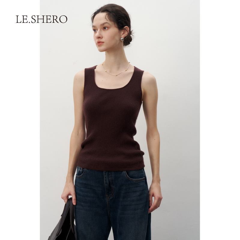 LE.SHERO韩系深U领毛织纯色吊带背心无袖上衣女打底内搭针织秋冬