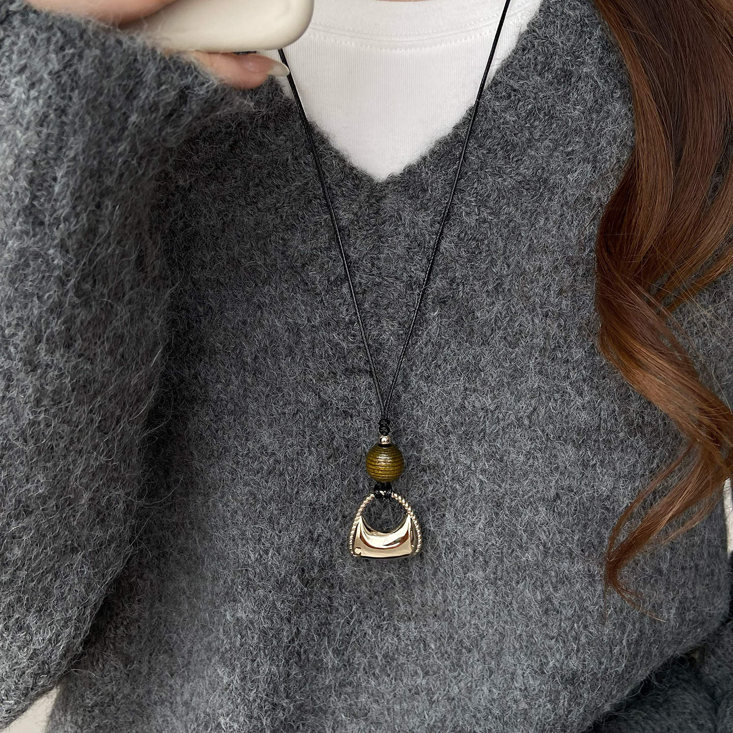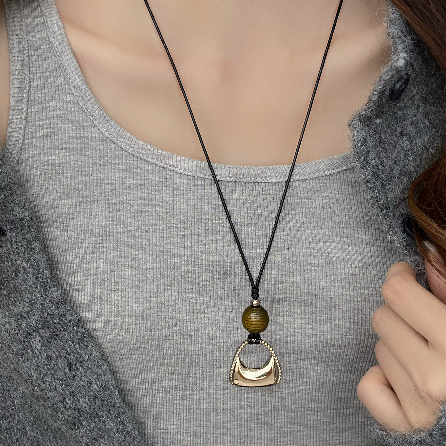 2025秋冬新款皮绳吊坠长款项链女