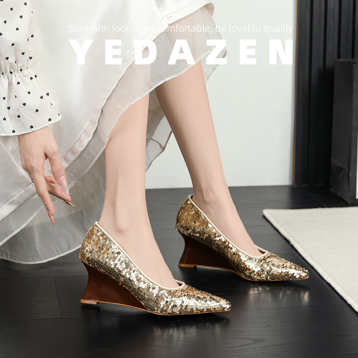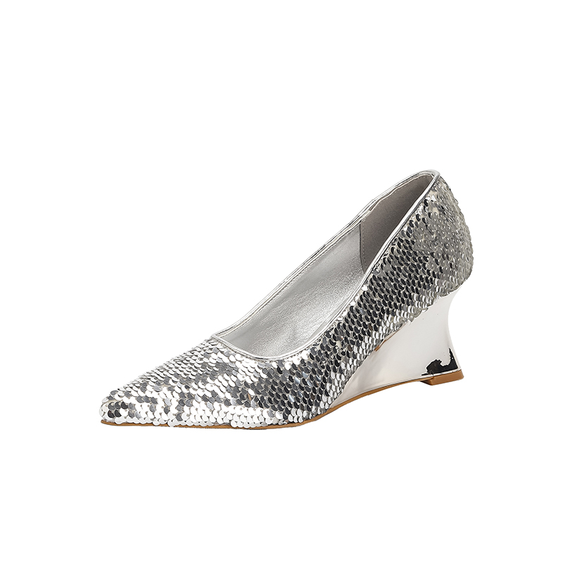 法式银色高跟鞋女外穿坡跟尖头18岁成年礼亮片单鞋2025新款配裙子