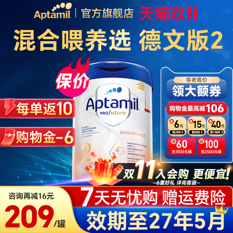 爱他美德国白金版2婴儿奶粉800gHMO配方宝宝婴幼儿官方旗舰店