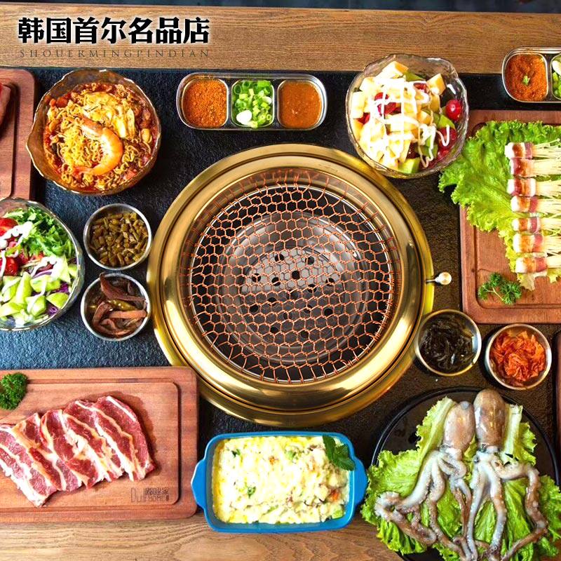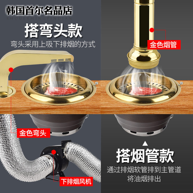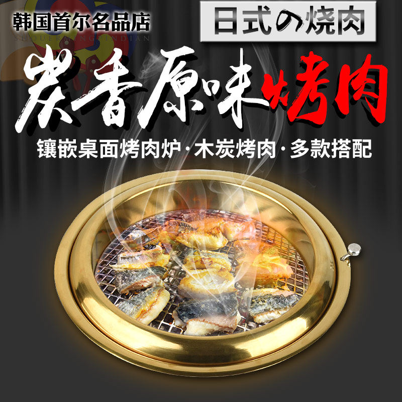 日式上排烟烤肉炉黄铜炭烤炉烤肉店高端炉具商用烧烤炉镶嵌烤肉锅