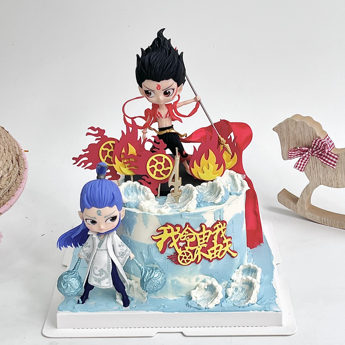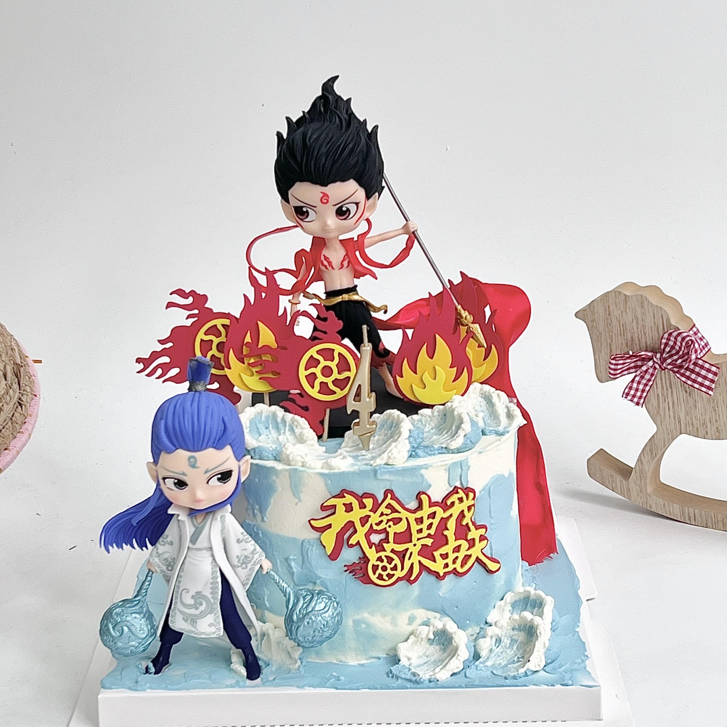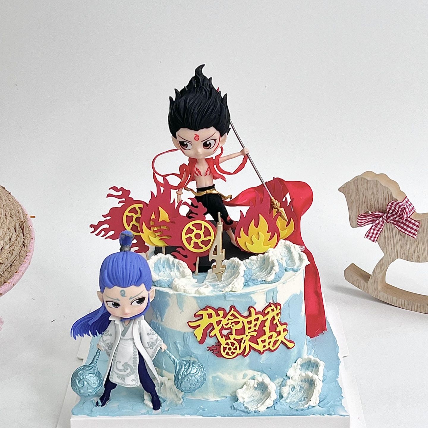 网红哪吒敖丙蛋糕装饰我命由我不由天风火轮儿童生日装扮烘焙摆件