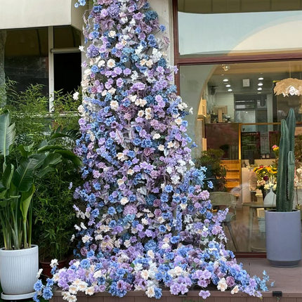 蓝紫色系莫奈玫瑰花瀑布网红墙打卡仿真花墙商场布景装饰仪式感