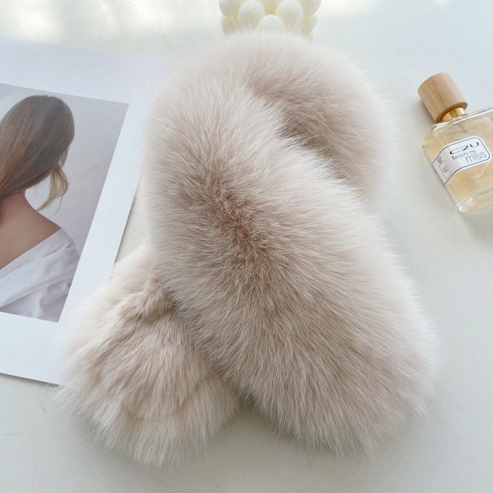 韩版整皮狐狸毛围巾围脖女秋冬双面毛反面獭兔毛领子真毛磁铁磁力