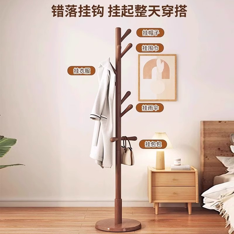 衣架落地卧室挂衣架房间衣服挂架家用挂包架榉木挂衣杆实木衣帽架