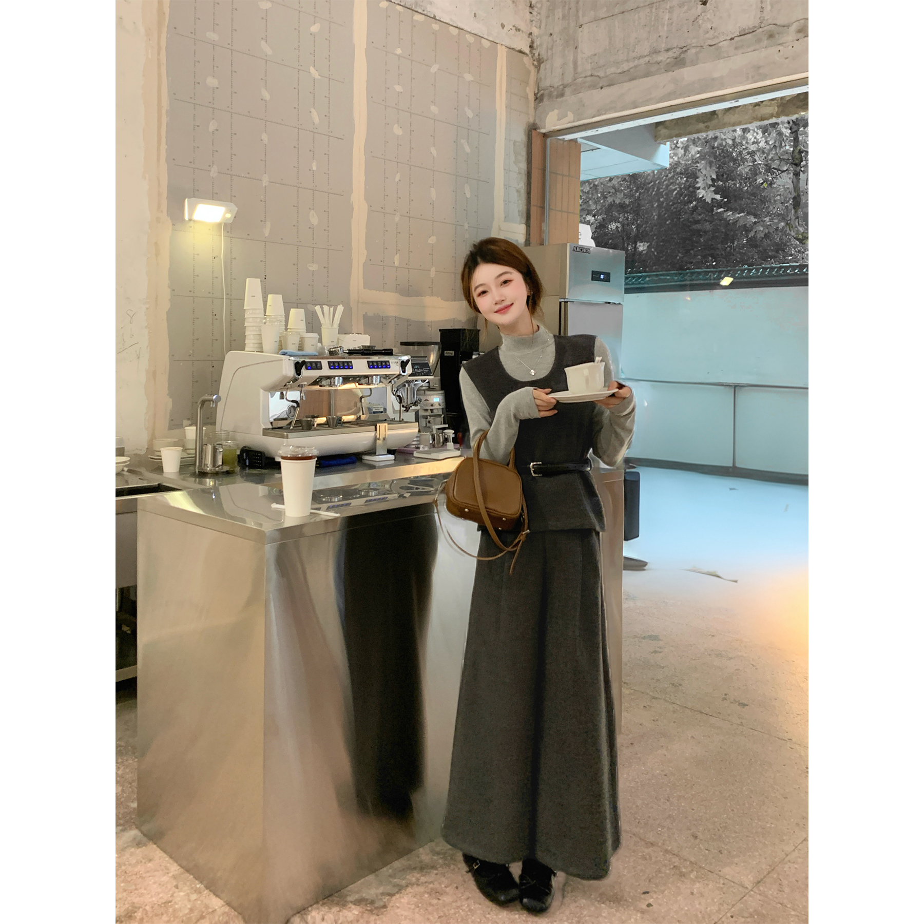 Huangzuozuo小个子无袖毛呢背心+九分阔腿裤时尚套装冬季女两件套
