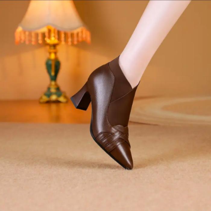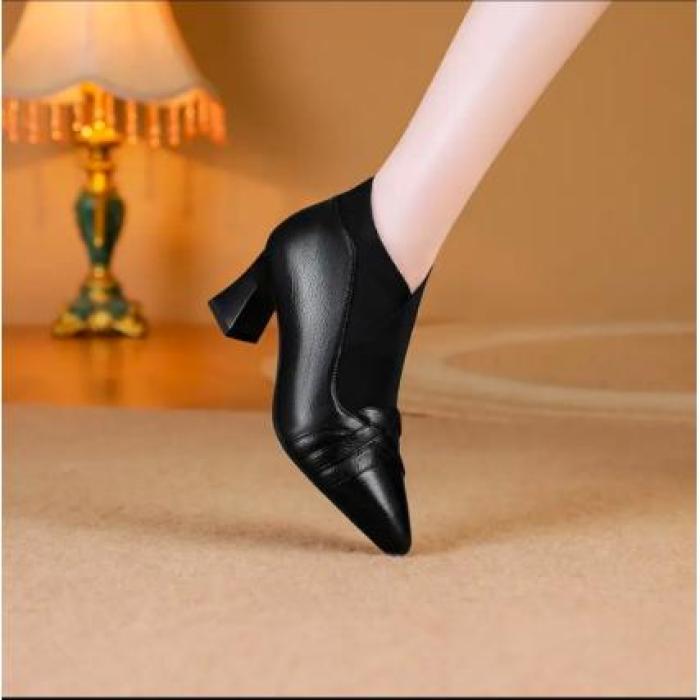 高跟短靴秋冬季女细跟皮鞋2025新款女鞋时尚皮靴女尖头瘦瘦靴