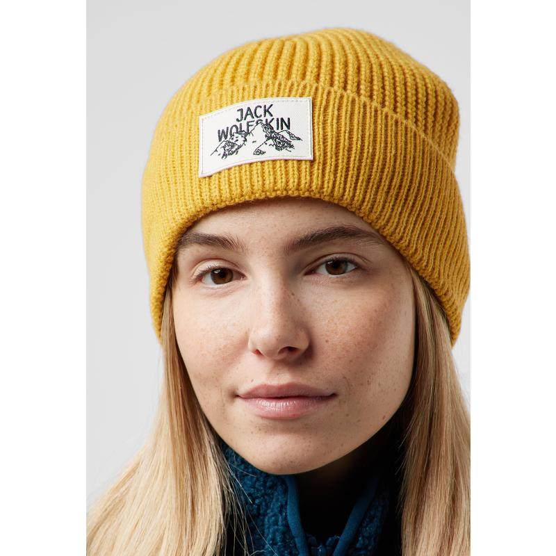 代购Jack wolfskin狼爪男士帽子保暖防风黄色毛线冬季户外
