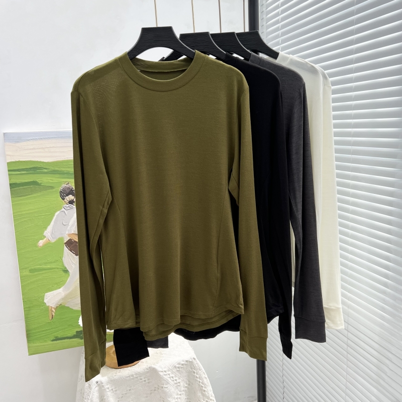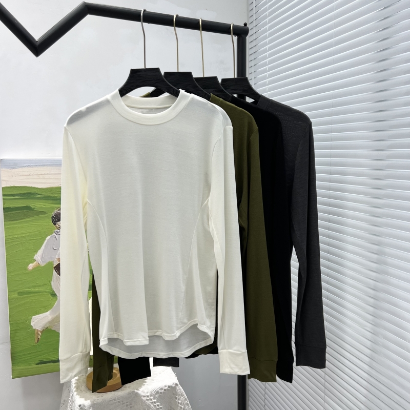 试衣间~基础简约款~宽松舒适长袖纯色打底羊毛衫T恤百搭显瘦上衣