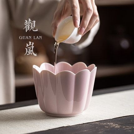 观岚复古陶瓷花瓣葵口建水中式茶洗茶杯洗水盂家用功夫茶具茶渣桶
